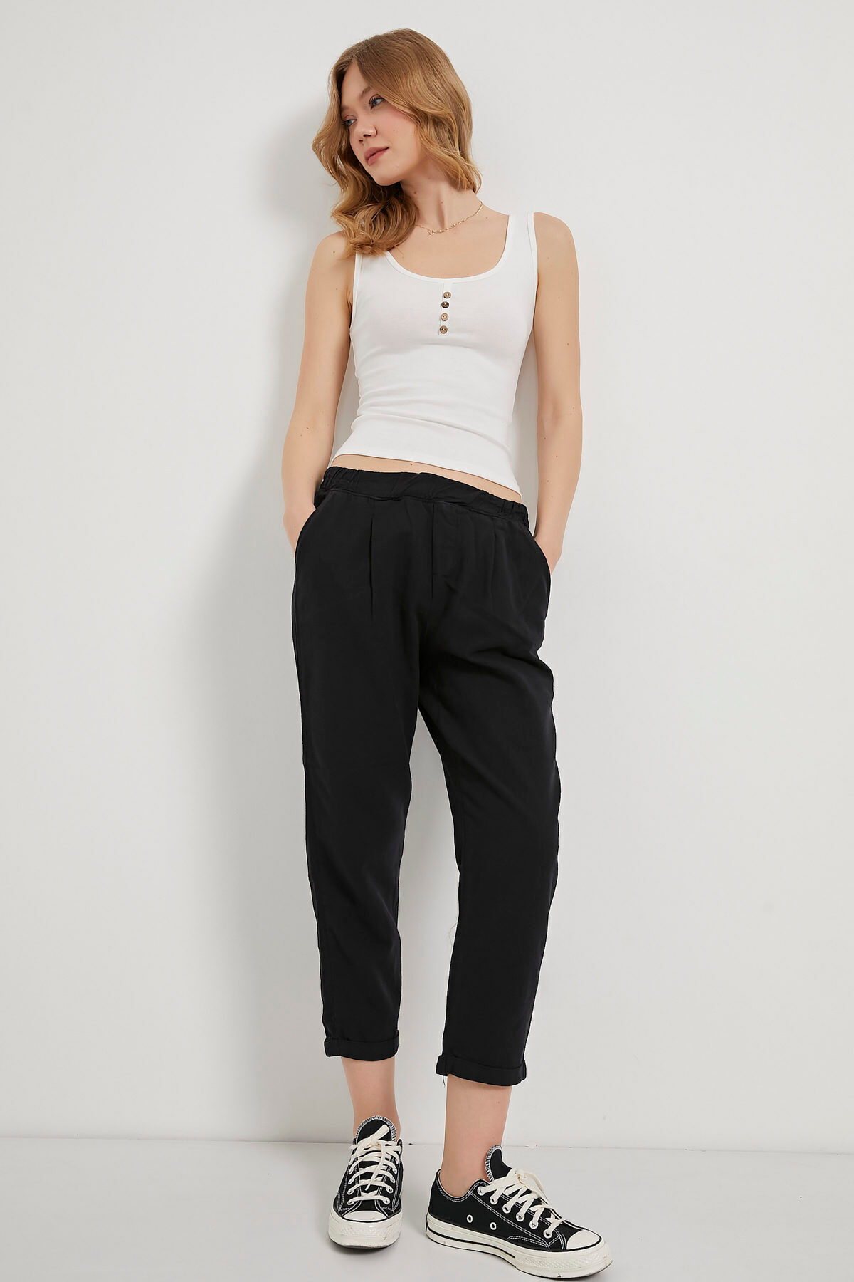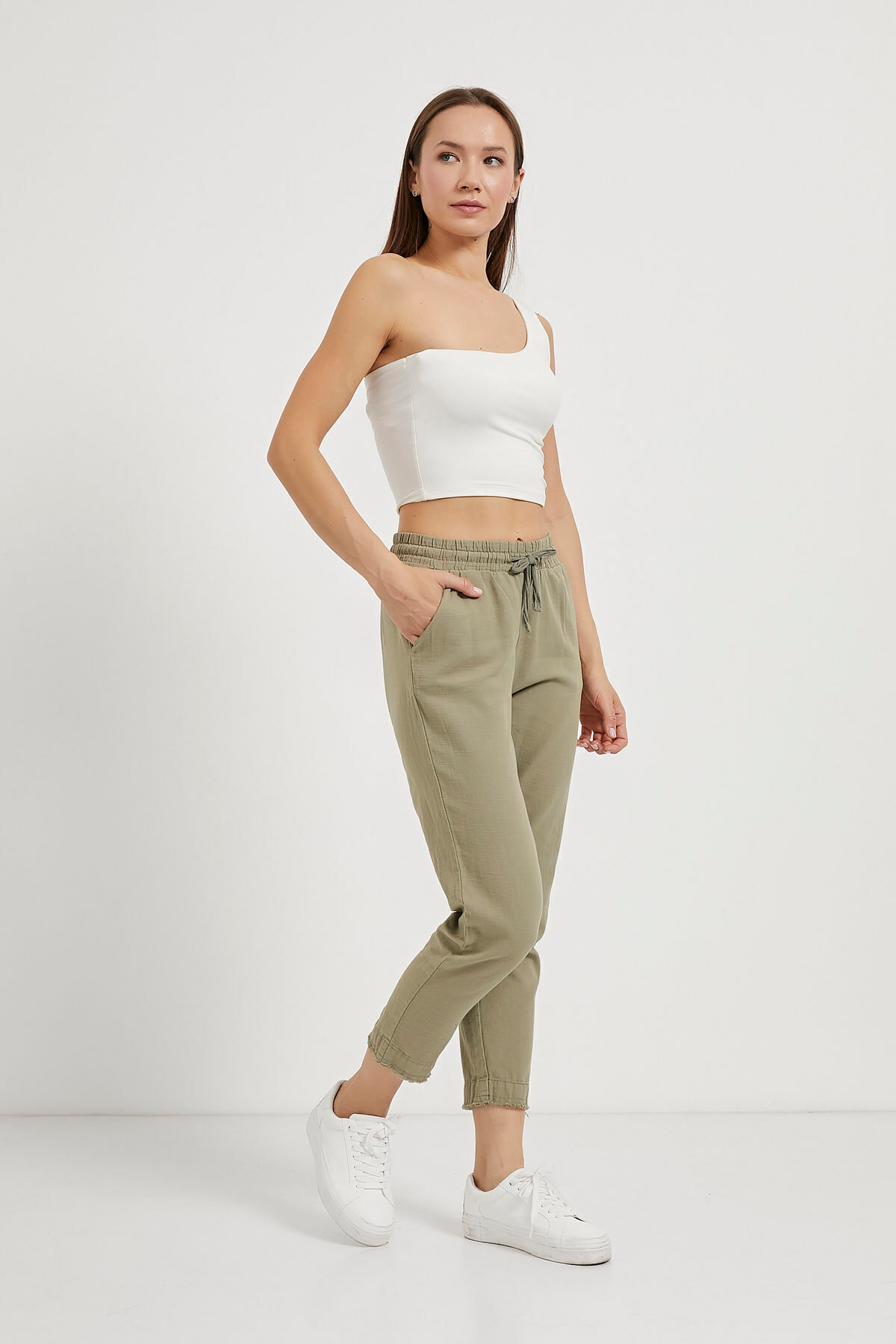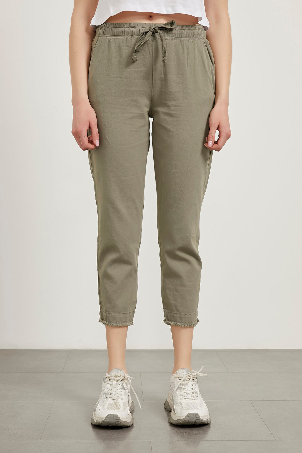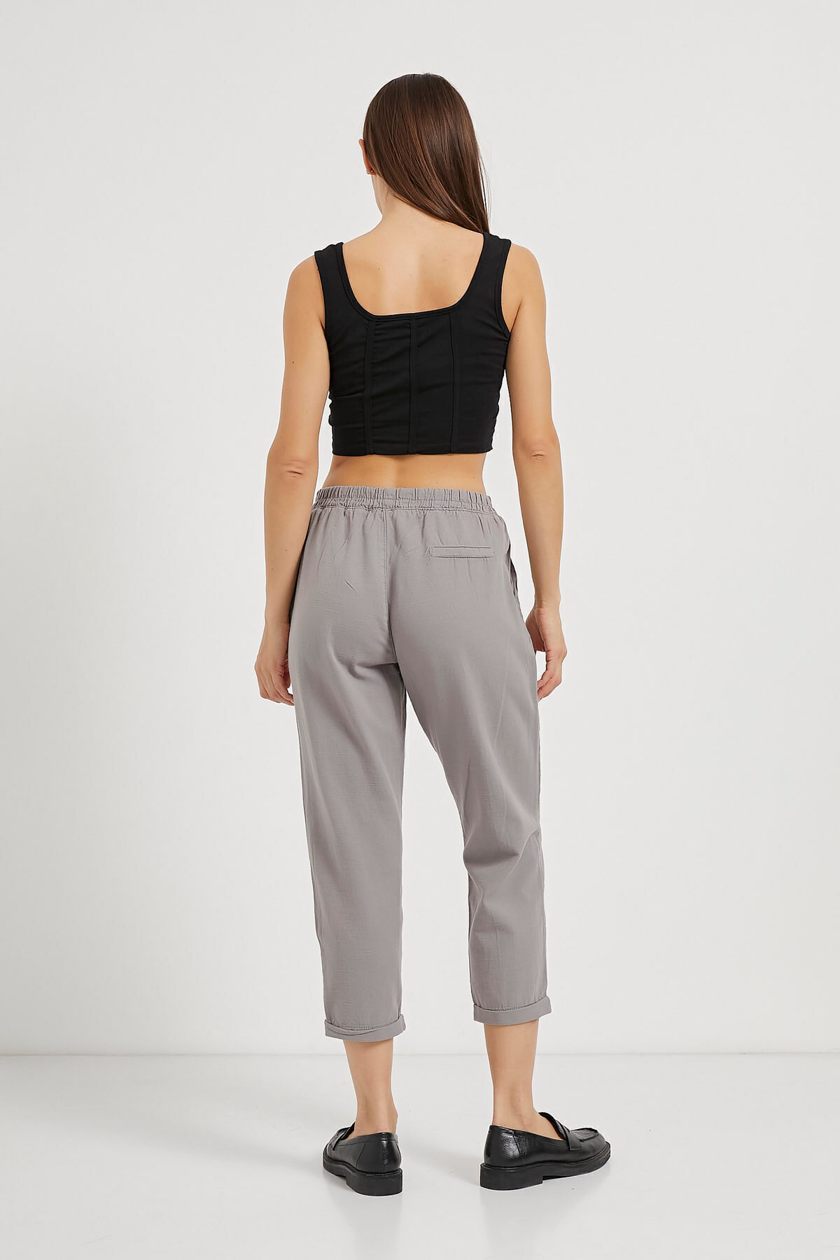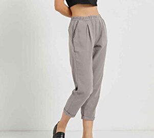 Kadın Beli Lastikli Bol Keten Gri Havuç Pantolon Kadın Beli Lastikli Bol Keten Gri Havuç Pantolon 340-5YB5378PTL XL