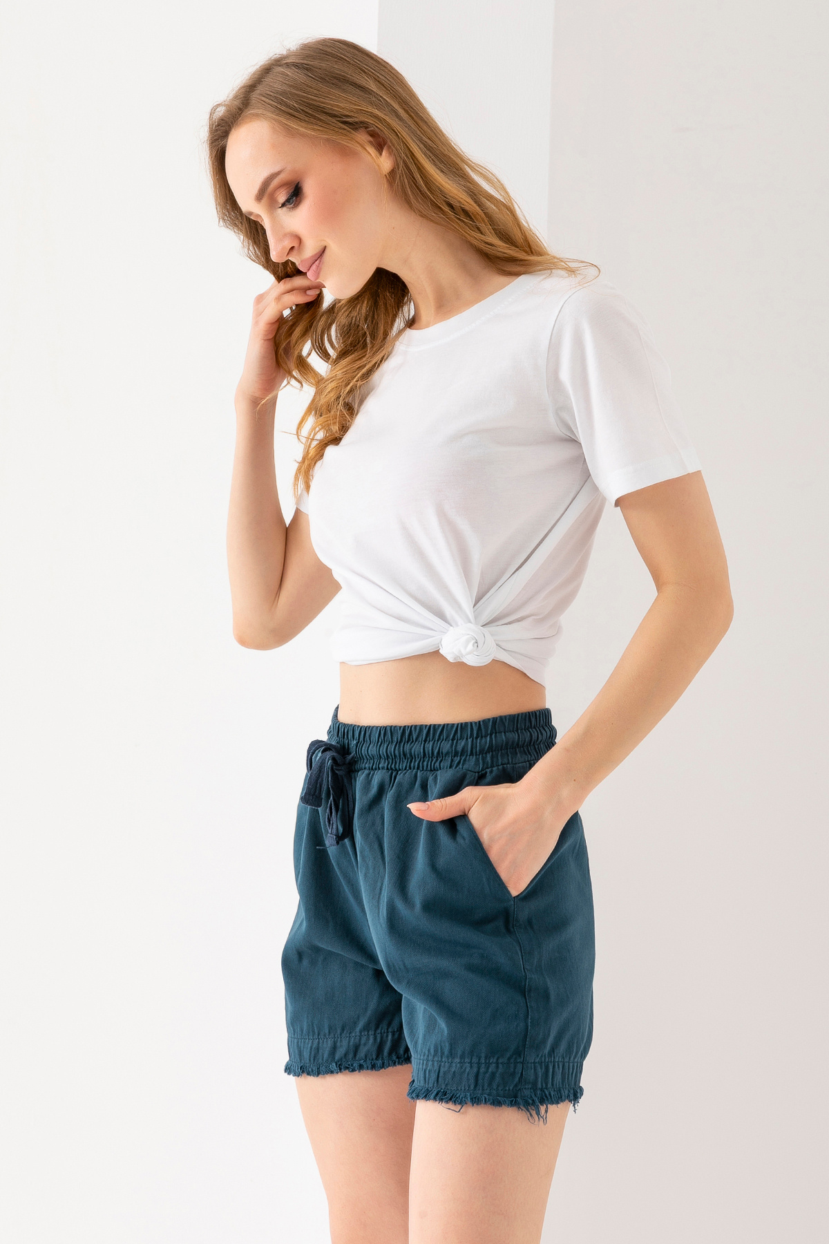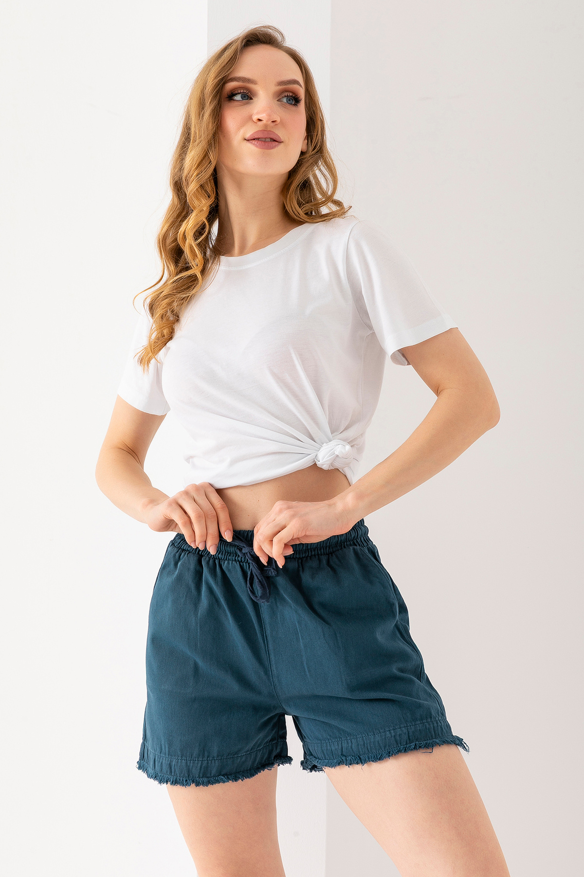 Kadın Beli Lastikli Cepli Pis Paça Kısa Şort Lacivert - 25YP 5322 Kadın Beli Lastikli Cepli Pis Paça Kısa Şort Lacivert - 25YP 5322 1586-25YP5322 L