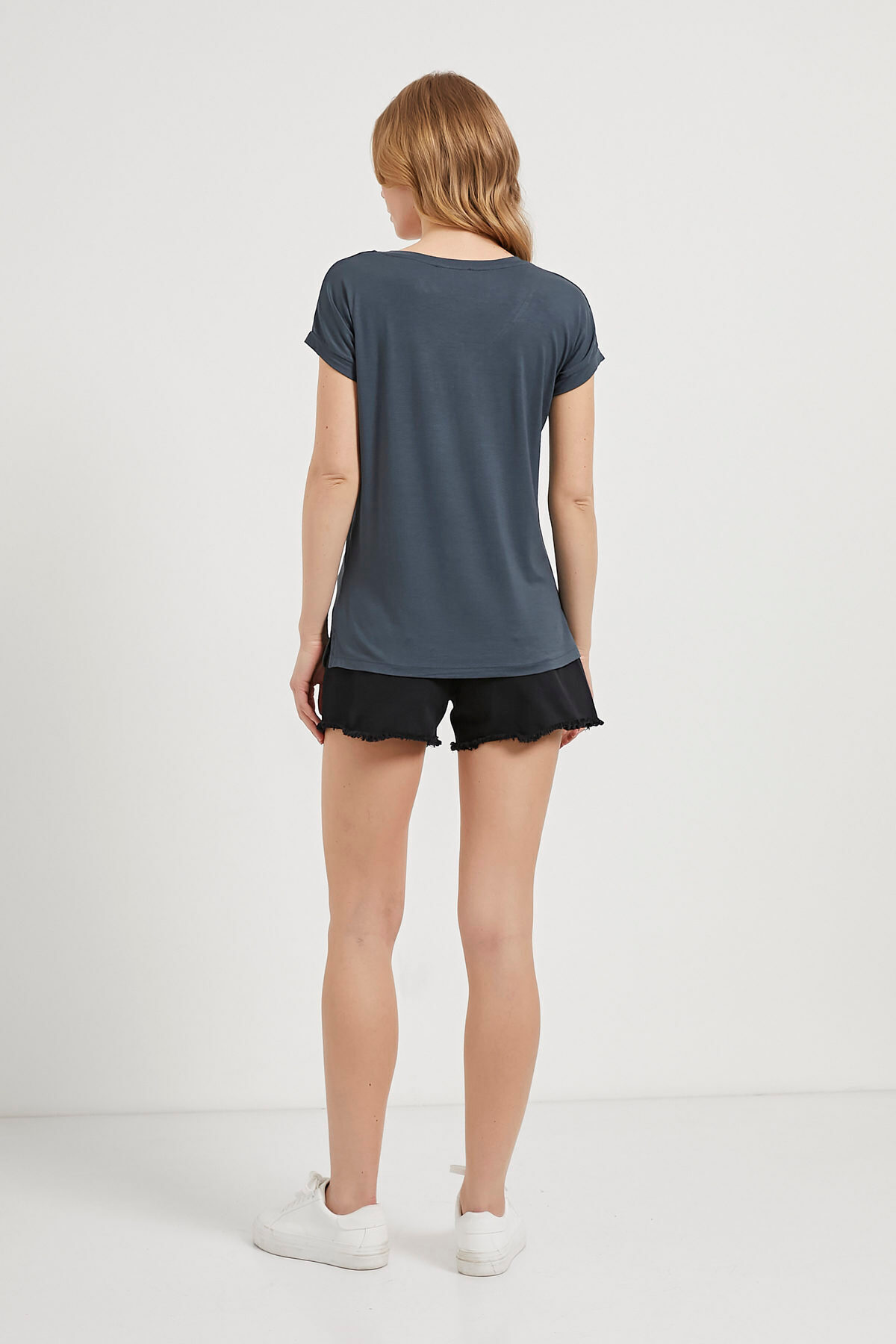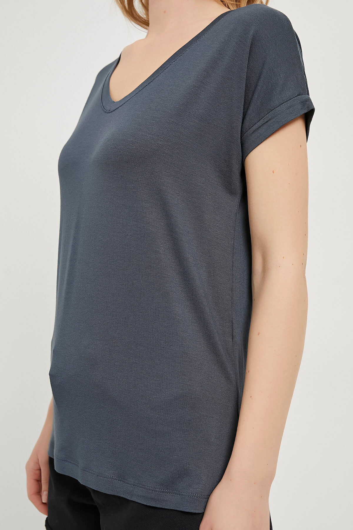 Kadın Bol Yazlık V Yaka Salaş Viskon Füme Tişört Kadın Bol Yazlık V Yaka Salaş Viskon Füme Tişört 135-5YB2000TSH L