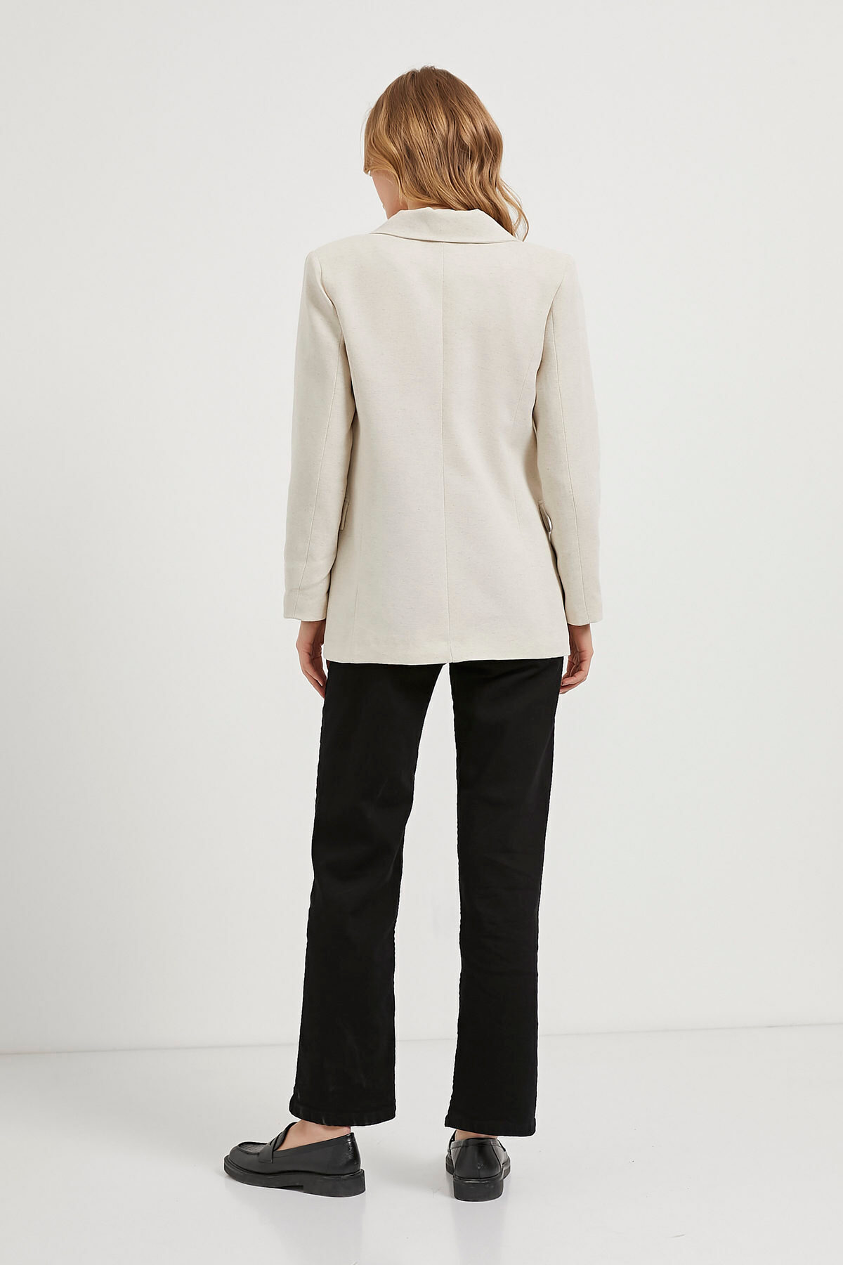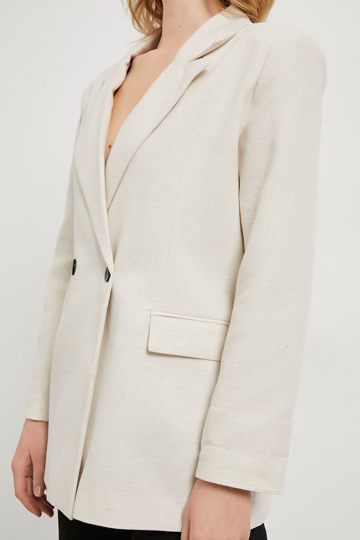 Kadın Keten Görünümlü Ofis Stili Ekru Blazer Ceket Kadın Keten Görünümlü Ofis Stili Ekru Blazer Ceket 463-5YB6946CKT XL
