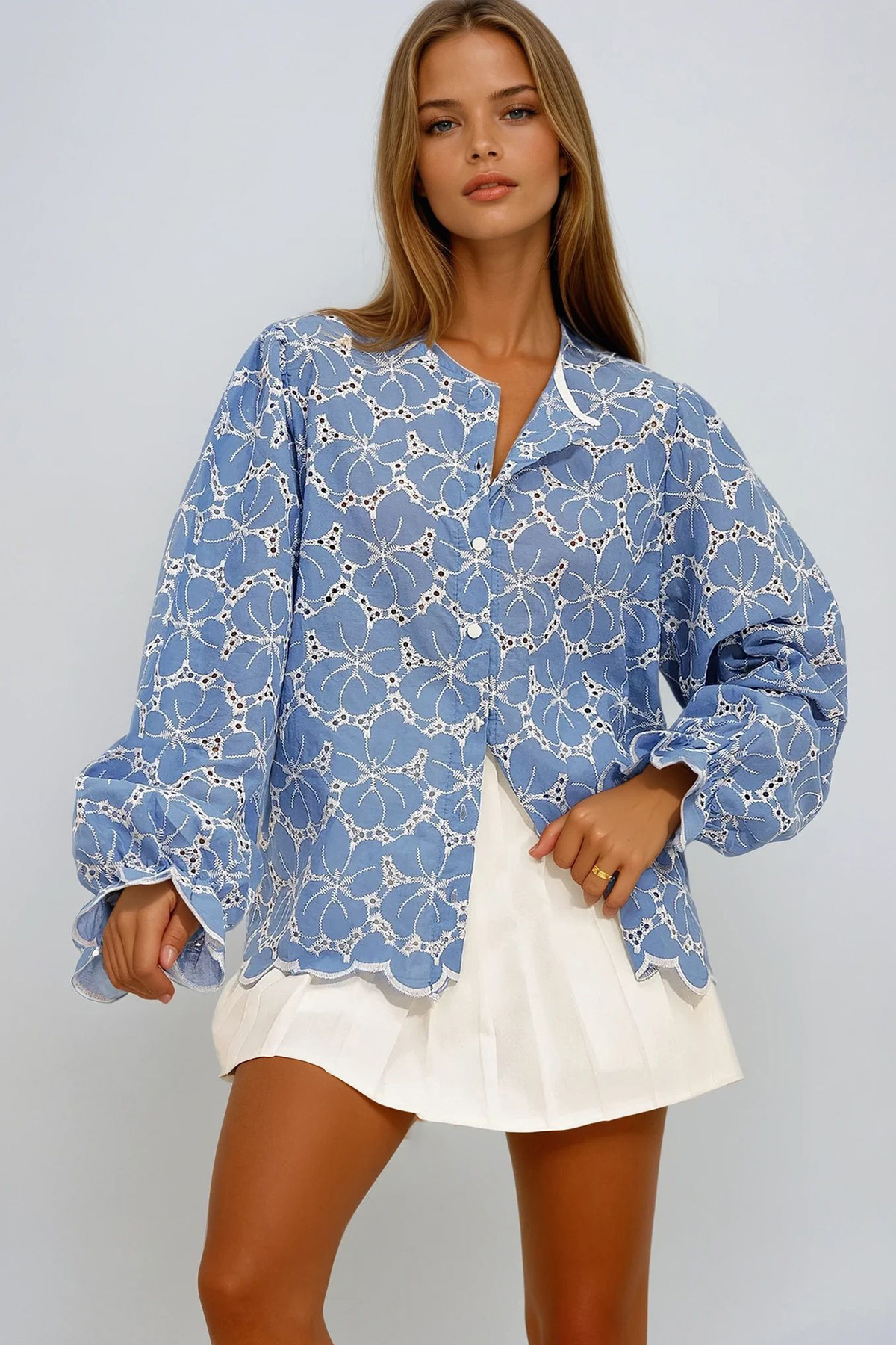 Kadın Mavi Düğme Detaylı Nakışlı Balon Kol Bluz Vgn-X10694 Kadın Mavi Düğme Detaylı Nakışlı Balon Kol Bluz Vgn-X10694 VGN-X10694 L