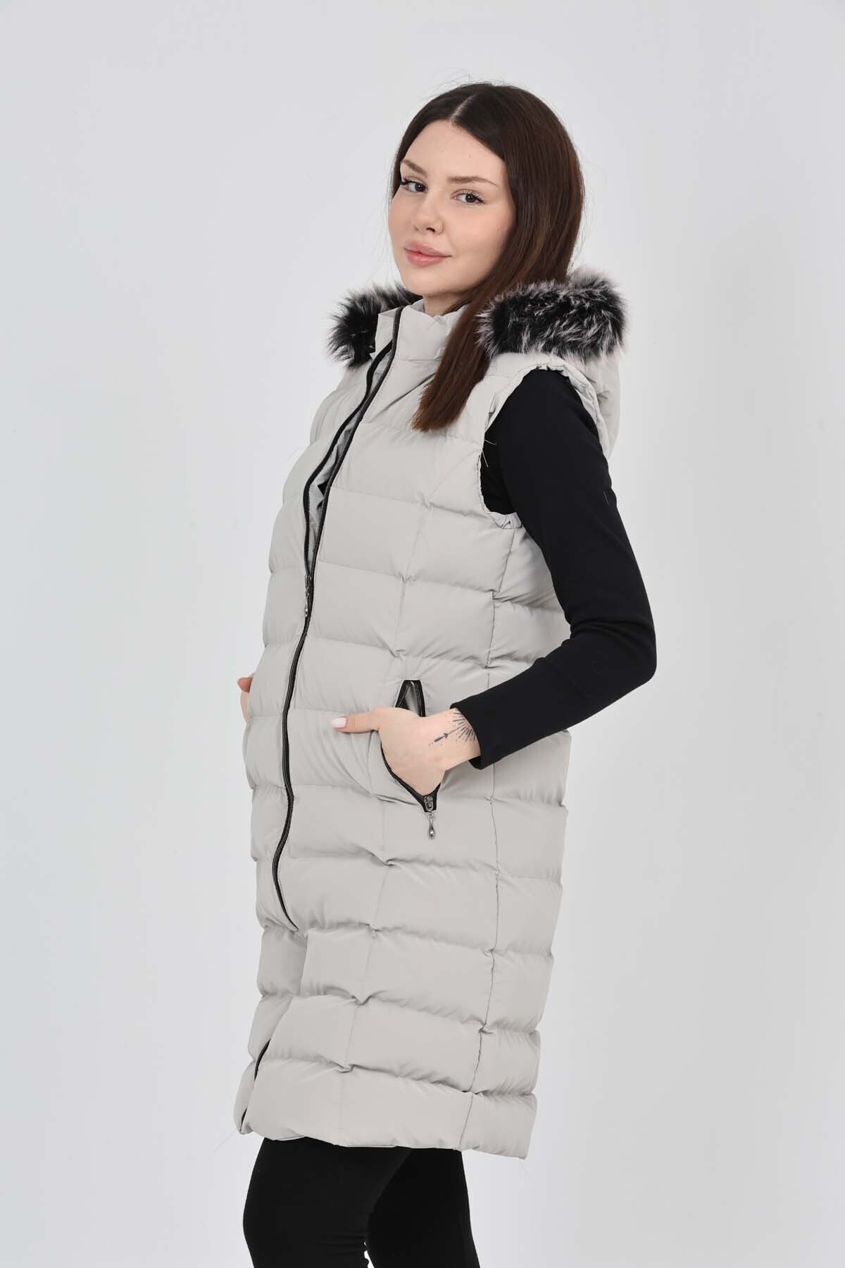 Kadın Nova Parlak Ekru Şişme Uzun Yelek Mont Kadın Nova Parlak Ekru Şişme Uzun Yelek Mont TACO7321 3XL