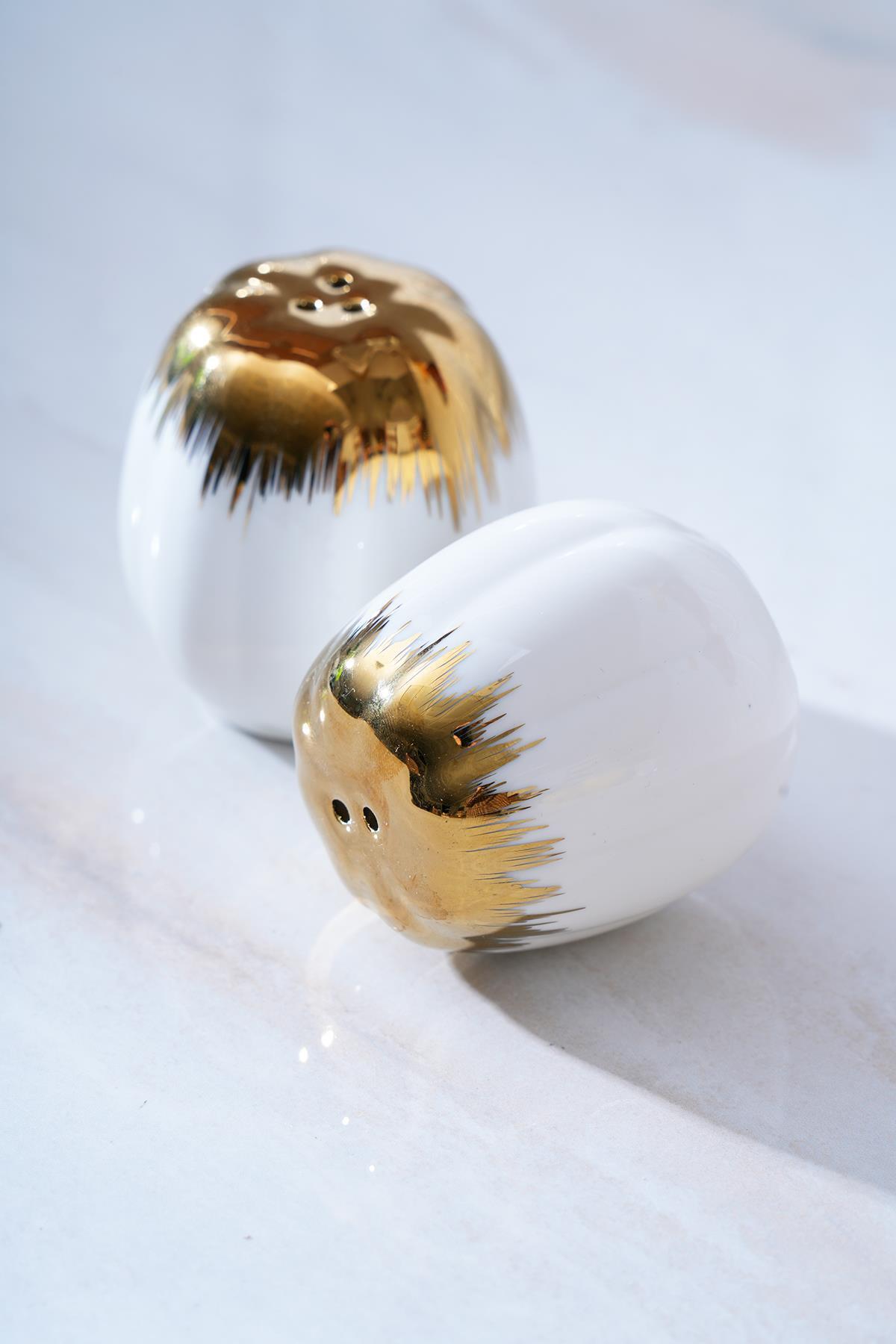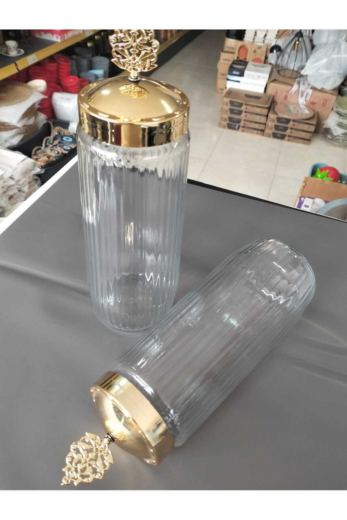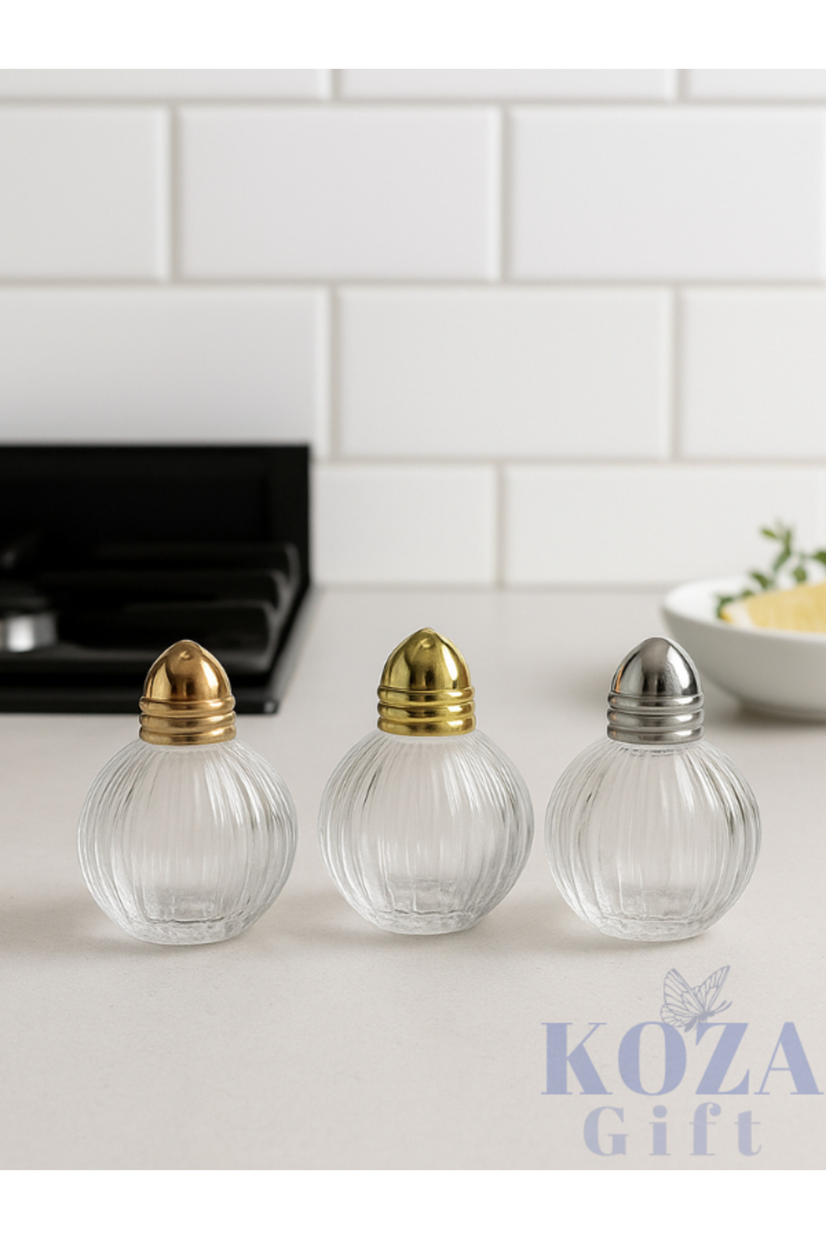 Altın Kapaklı Cam Tuzluk Biberlik Seti Dekoratif Lüks Tasarım Baharatlık 2'li Altın Kapaklı Cam Tuzluk Biberlik Seti Dekoratif Lüks Tasarım Baharatlık 2'li yk1414-2li تک سایز