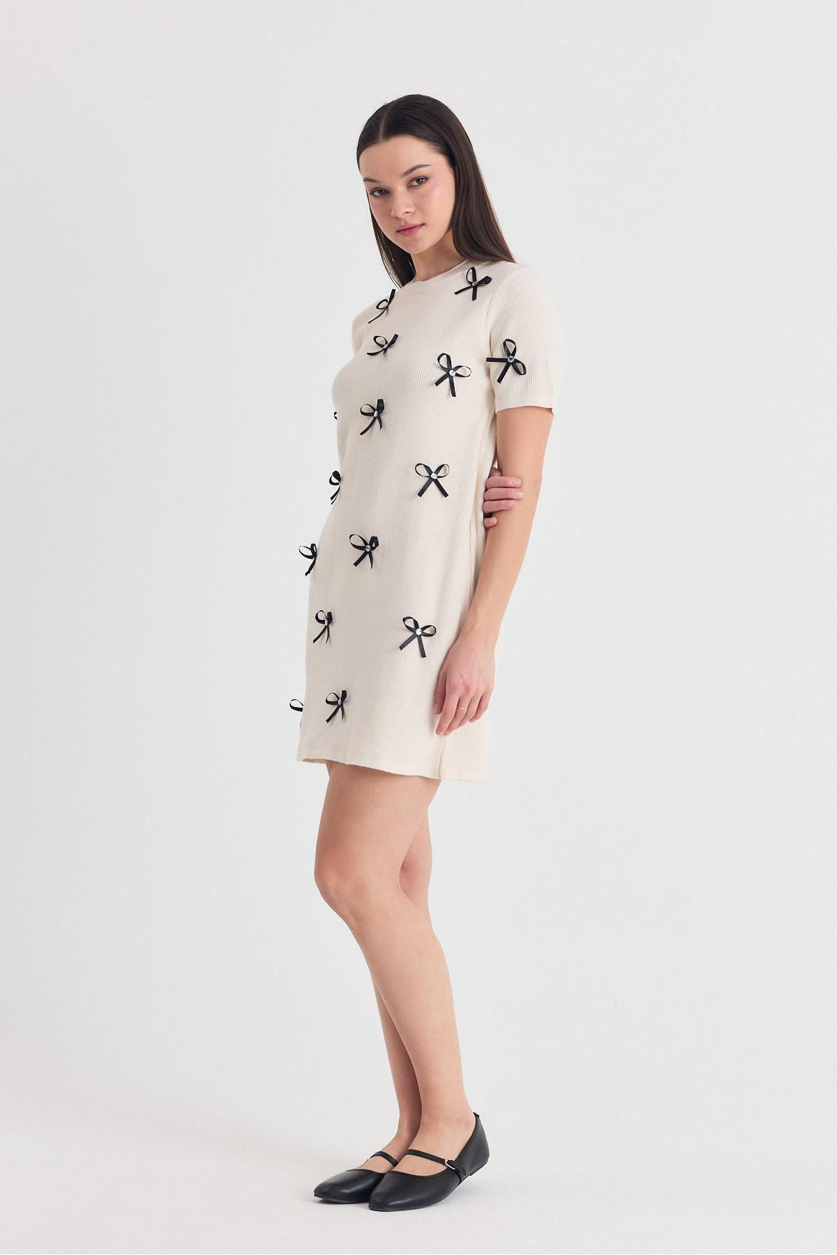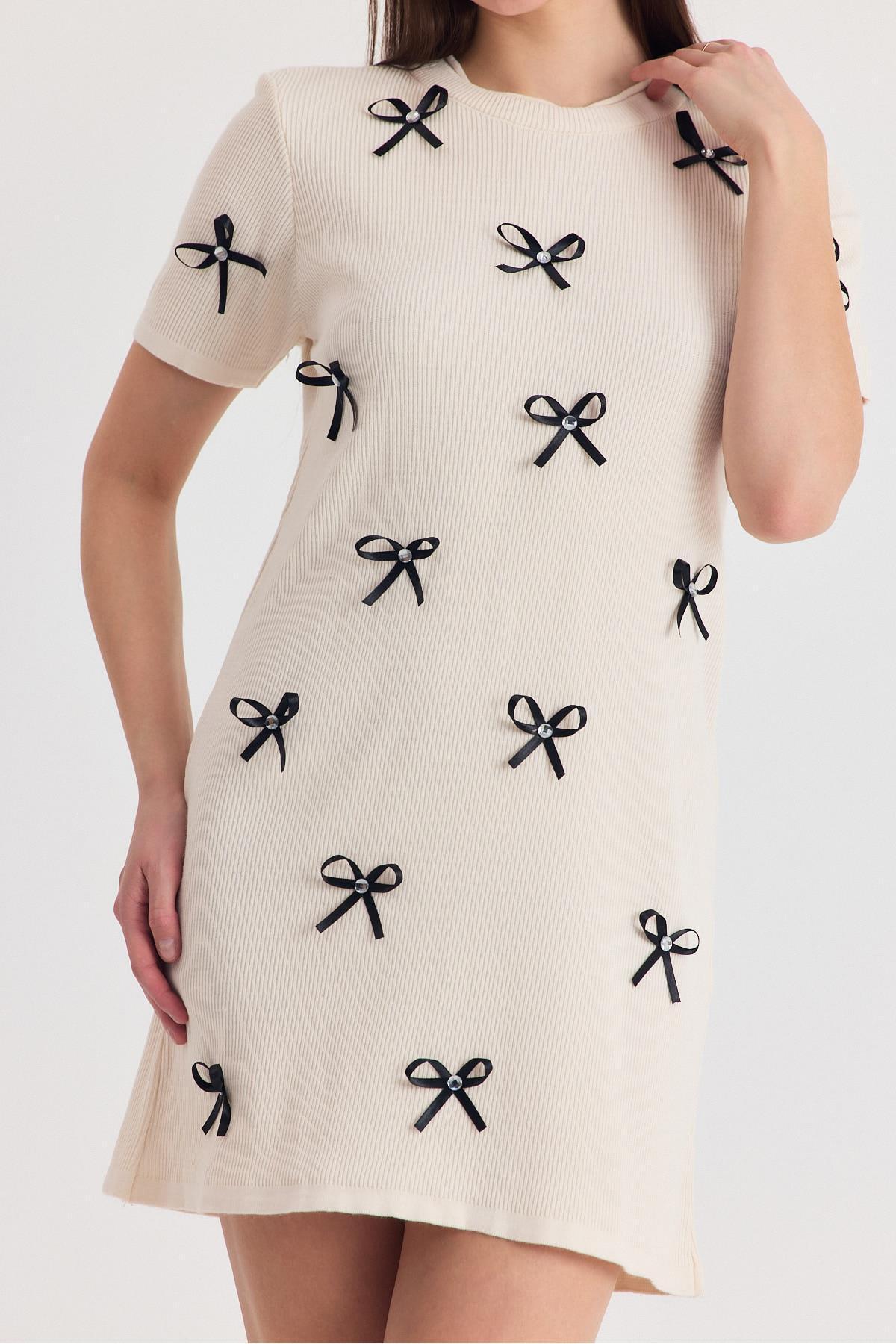 Krem Kurdela Detay Triko Elbise 2117 Krem Kurdela Detay Triko Elbise 2117 25Y1123DIS047 Standart