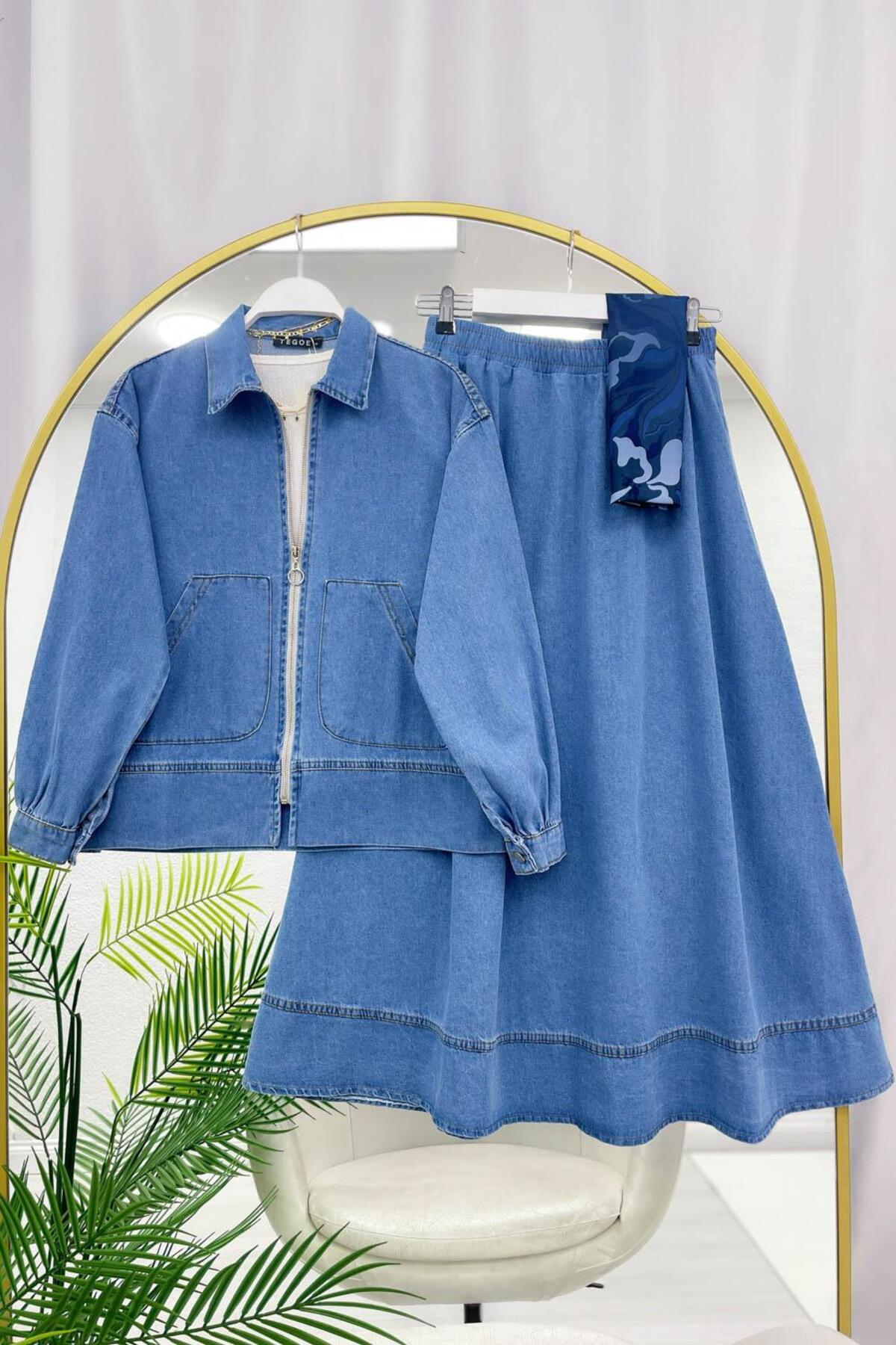 Kadın Fermuarlı Yaka Kemer Detaylı Etekli Takım Kadın Fermuarlı Yaka Kemer Detaylı Etekli Takım FRYKKMRTK29 48