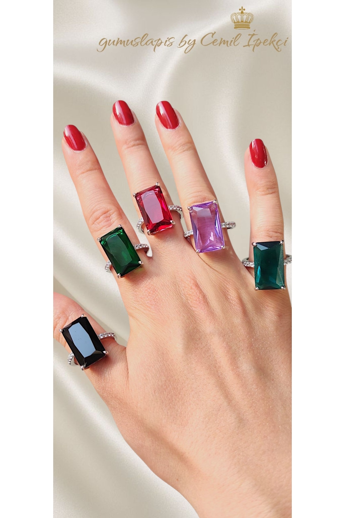 Renkli Taşlarla Süslü Dikdörtgen Motif Gümüş Yüzük Serisi Renkli Taşlarla Süslü Dikdörtgen Motif Gümüş Yüzük Serisi renkli dikdörtgen seri yüzük M