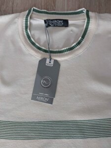 Ekru Sıfır Yaka Çizgili Triko Tişört- 2418 Ekru Sıfır Yaka Çizgili Triko Tişört- 2418 MRN2023S000209-A 2XL