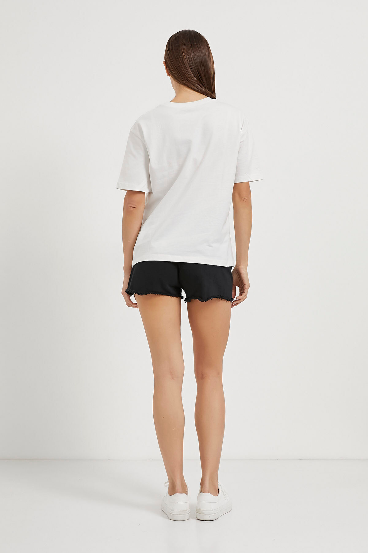 Kadın Leopar Desen Fiyonklu Kısa Kol Beyaz Tişört Kadın Leopar Desen Fiyonklu Kısa Kol Beyaz Tişört 155-5YB3520TSH L