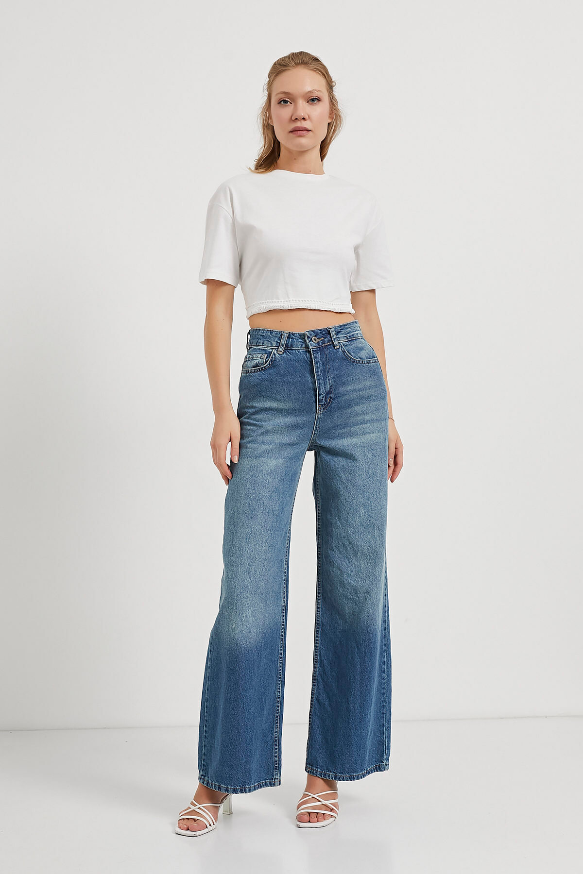 Kadın Yüksek Bel Bol Laci Kumaş Palazzo Pantolon Kadın Yüksek Bel Bol Laci Kumaş Palazzo Pantolon 190-5YB12983PTL 46