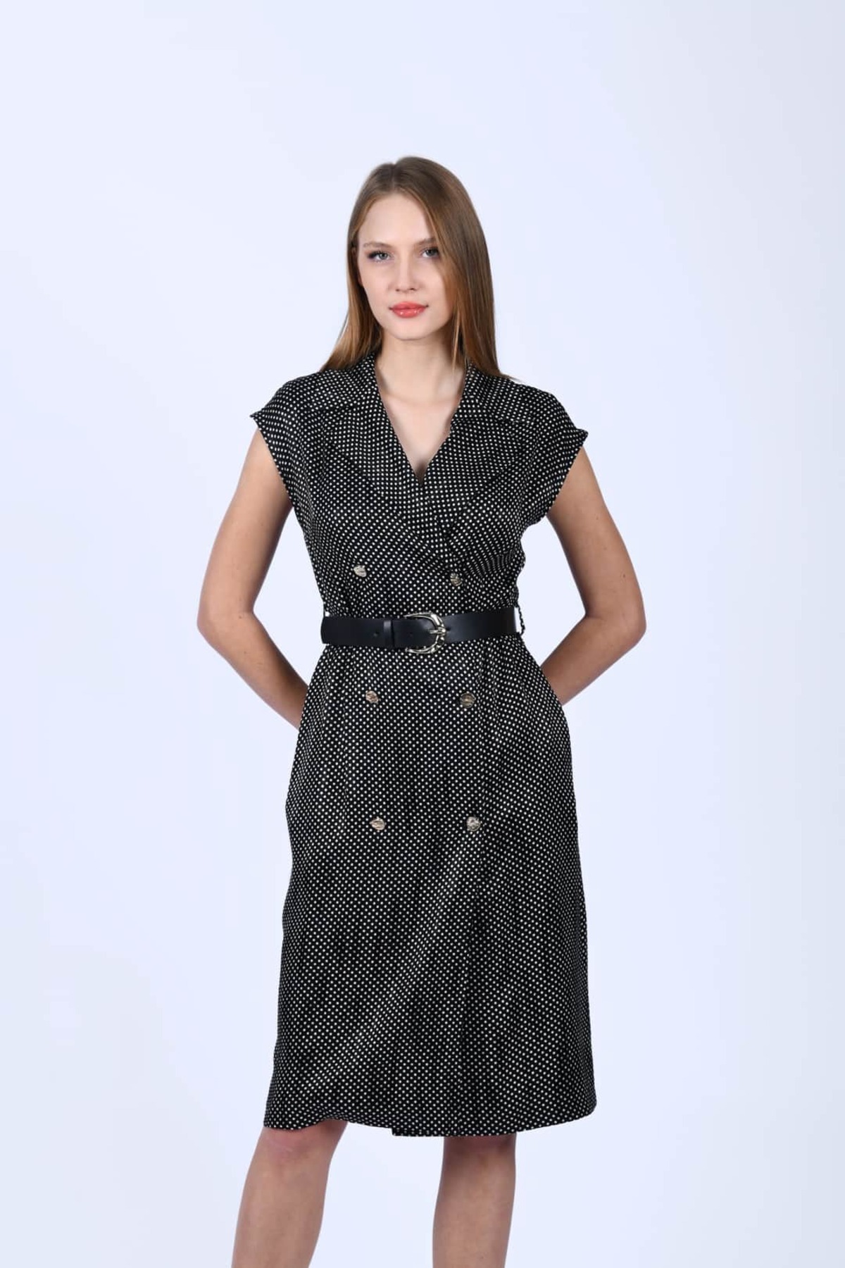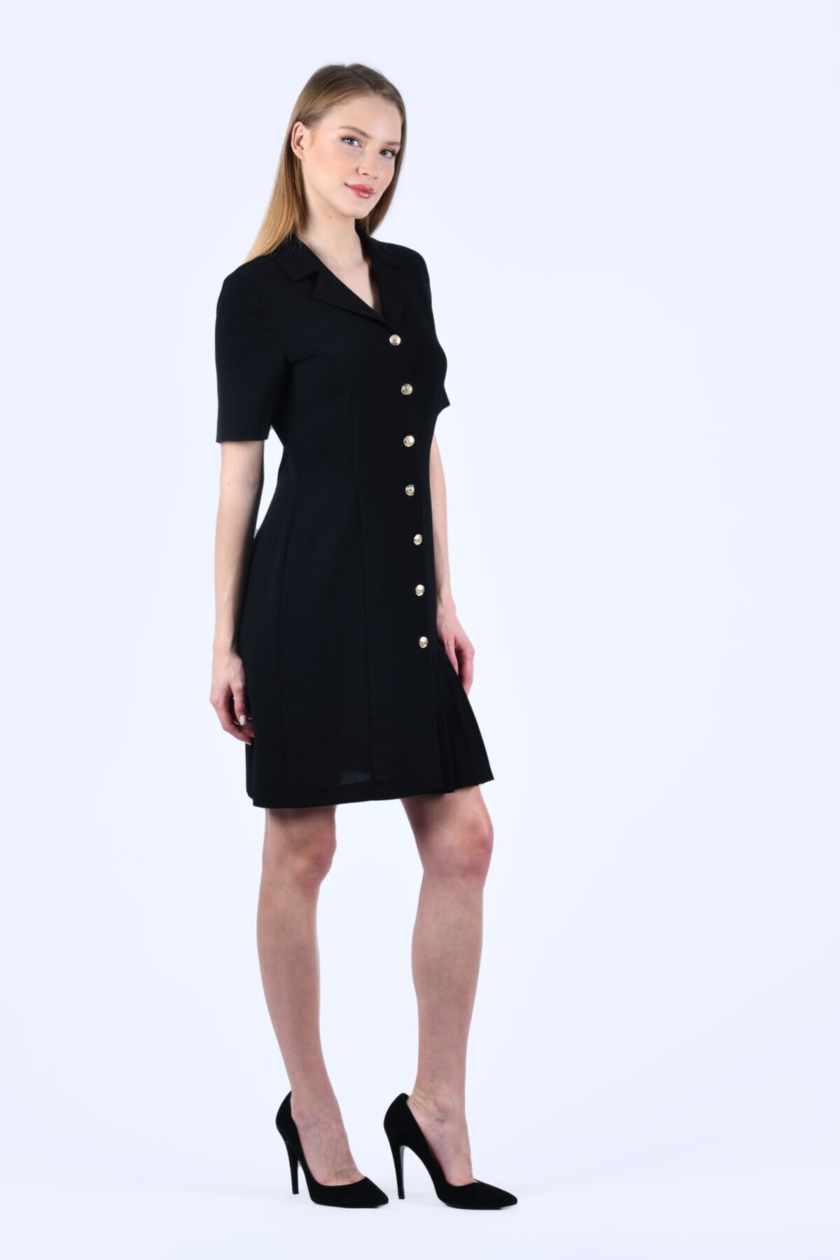 Siyah Düğmeli Ceket Yaka Elbise - QE343 Siyah Düğmeli Ceket Yaka Elbise - QE343 QM.Y25.ELB.QE343.0001 42