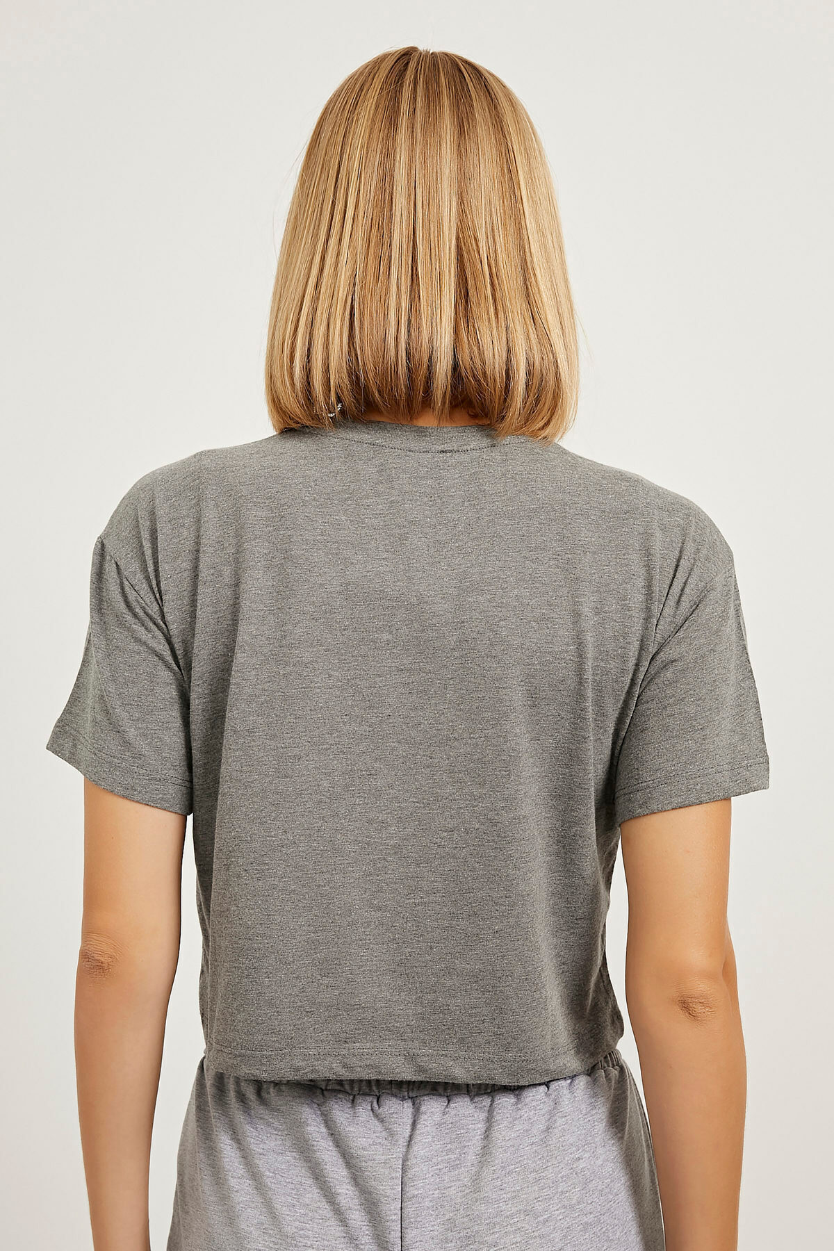 Kadın Baskılı Kısa Kollu Yazlık Gri Crop Tişört Kadın Baskılı Kısa Kollu Yazlık Gri Crop Tişört 270-4YB1210TSH XL