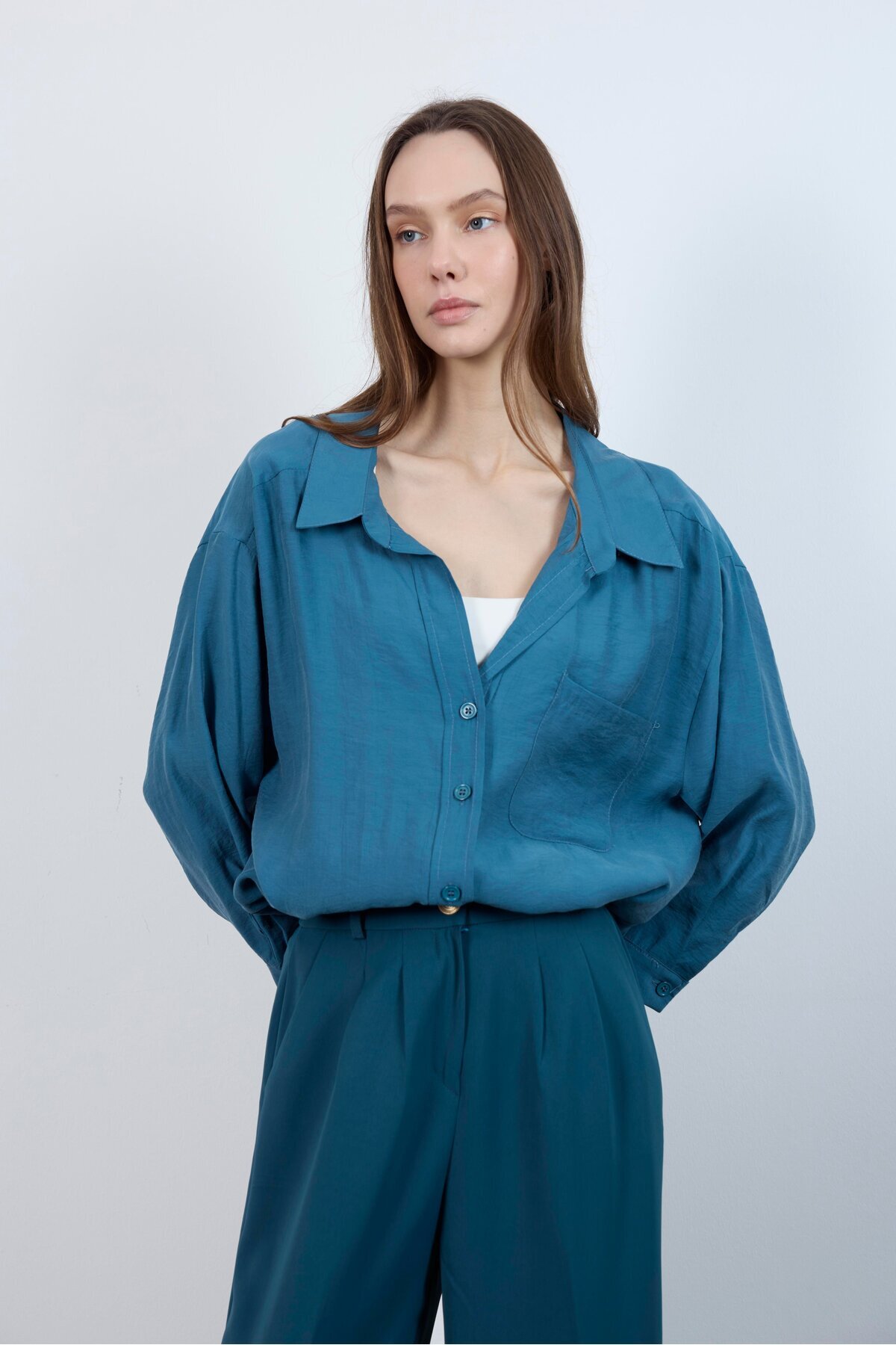 4612 Düşük Omuzlu Oversize Gömlek Petrol Mavi 4612 Düşük Omuzlu Oversize Gömlek Petrol Mavi Standart