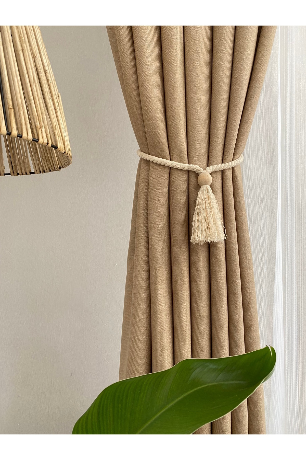 Doğal Pamuk İpli Perde Bağlama Aparatı - Ahşap boncuklu - 1 ADET Doğal Pamuk İpli Perde Bağlama Aparatı - Ahşap boncuklu - 1 ADET boncukperde43 تک سایز