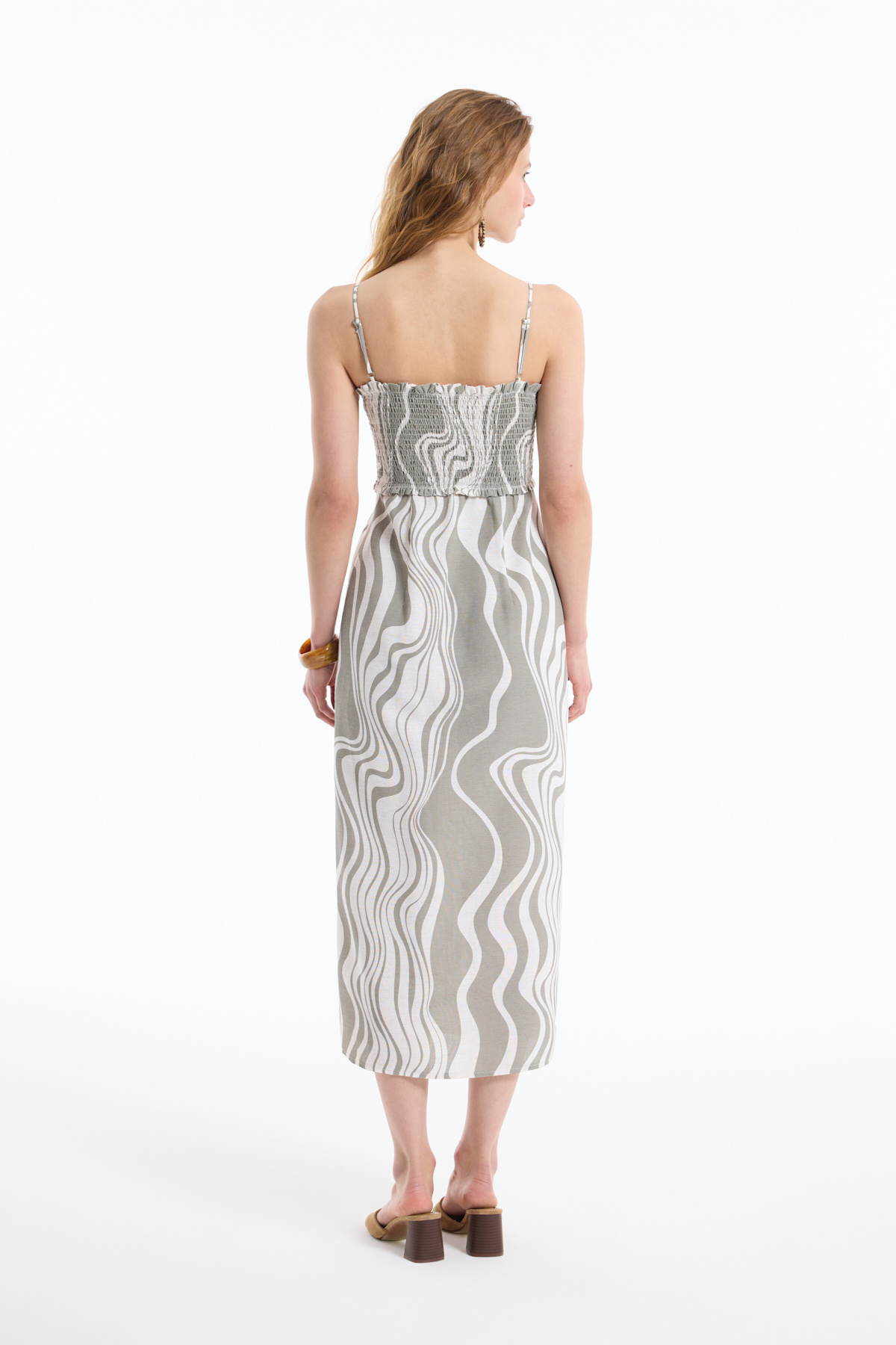 Boncuk Askılı Gipeli Yırtmaçlı Keten Elbise Haki Boncuk Askılı Gipeli Yırtmaçlı Keten Elbise Haki 25YELB00307 L