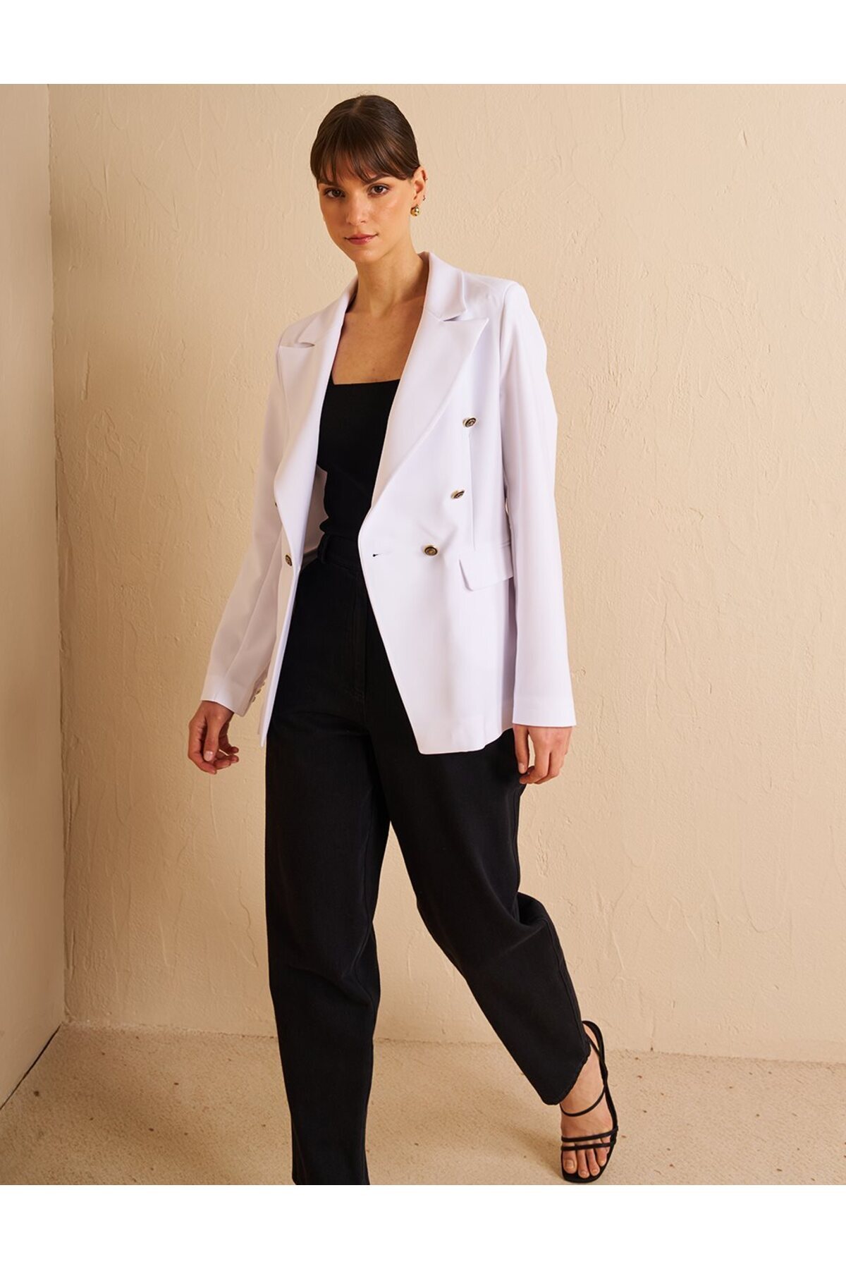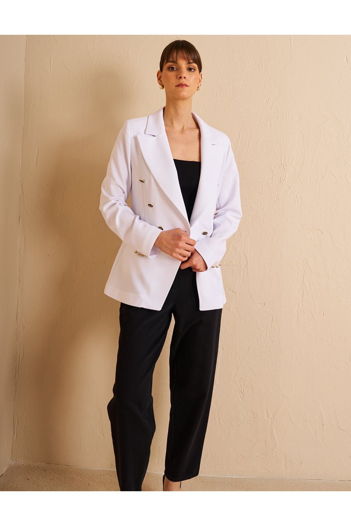 Düğmeli Blazer Ceket Optik Beyaz Düğmeli Blazer Ceket Optik Beyaz KA-B25-13063 42