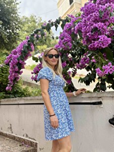 Coool Kare Yaka Çiçekli Bürümcük Kısa Kollu Mini Yazlık Elbise E0874AX25SM Coool Kare Yaka Çiçekli Bürümcük Kısa Kollu Mini Yazlık Elbise E0874AX25SM XL