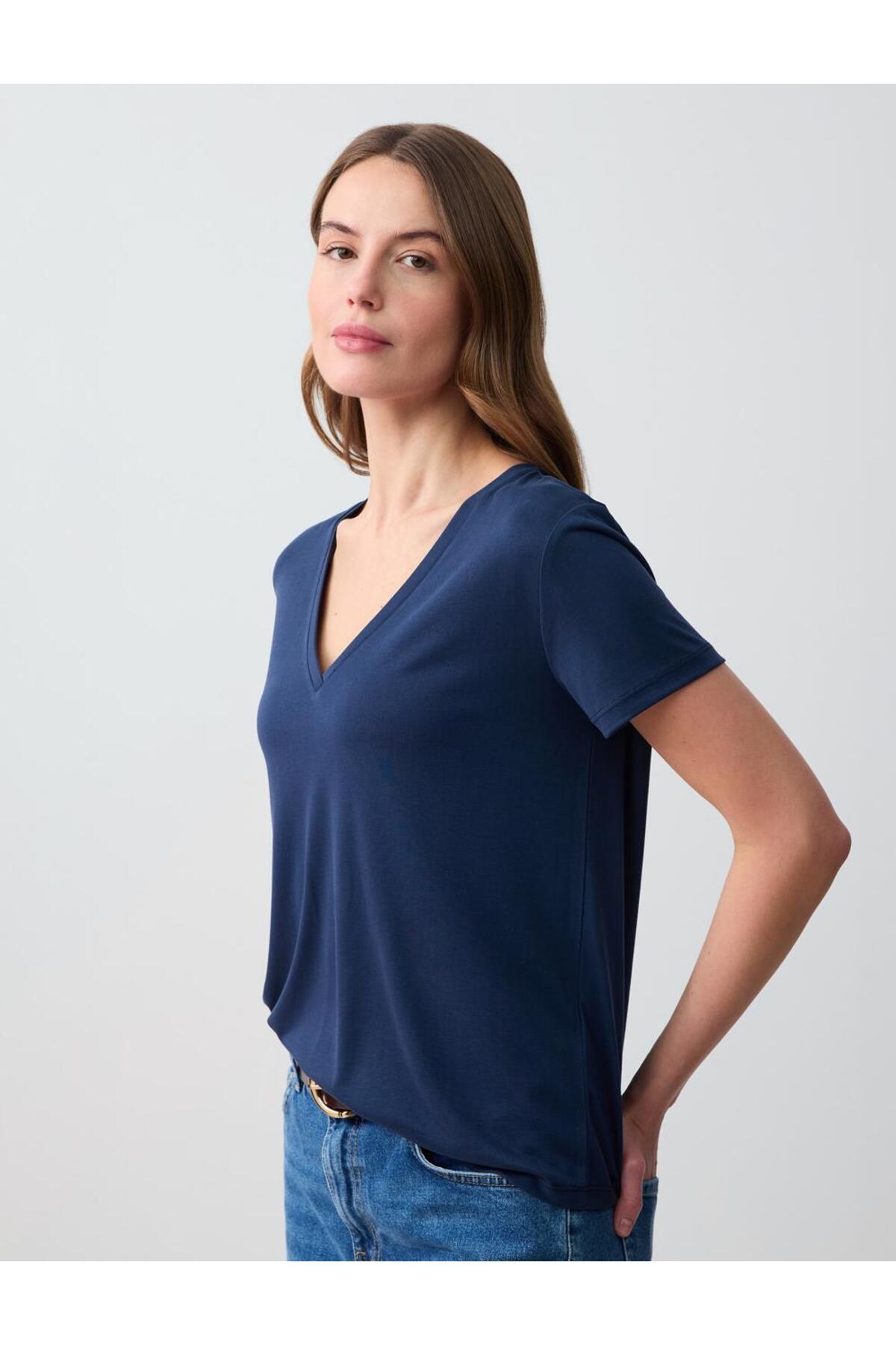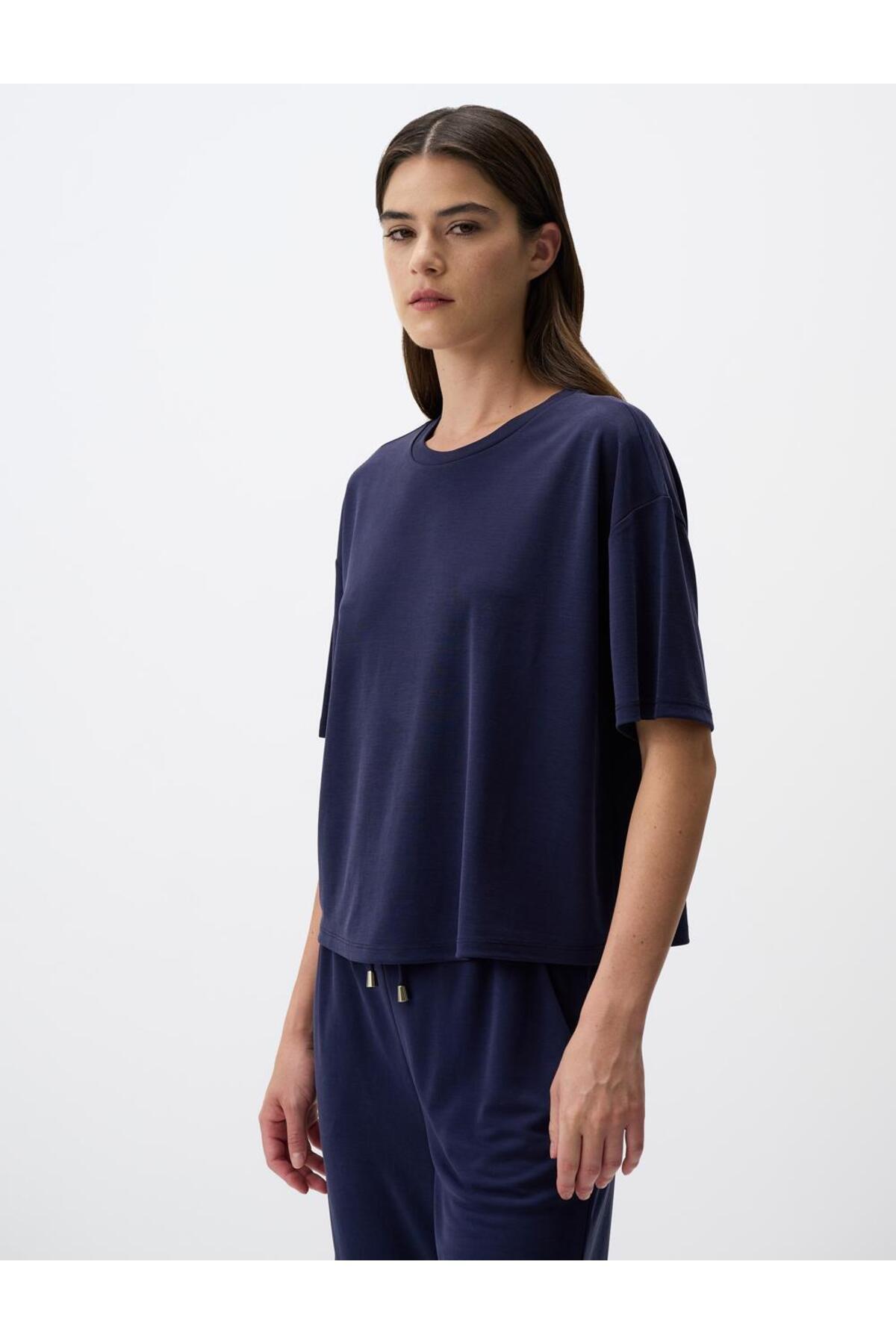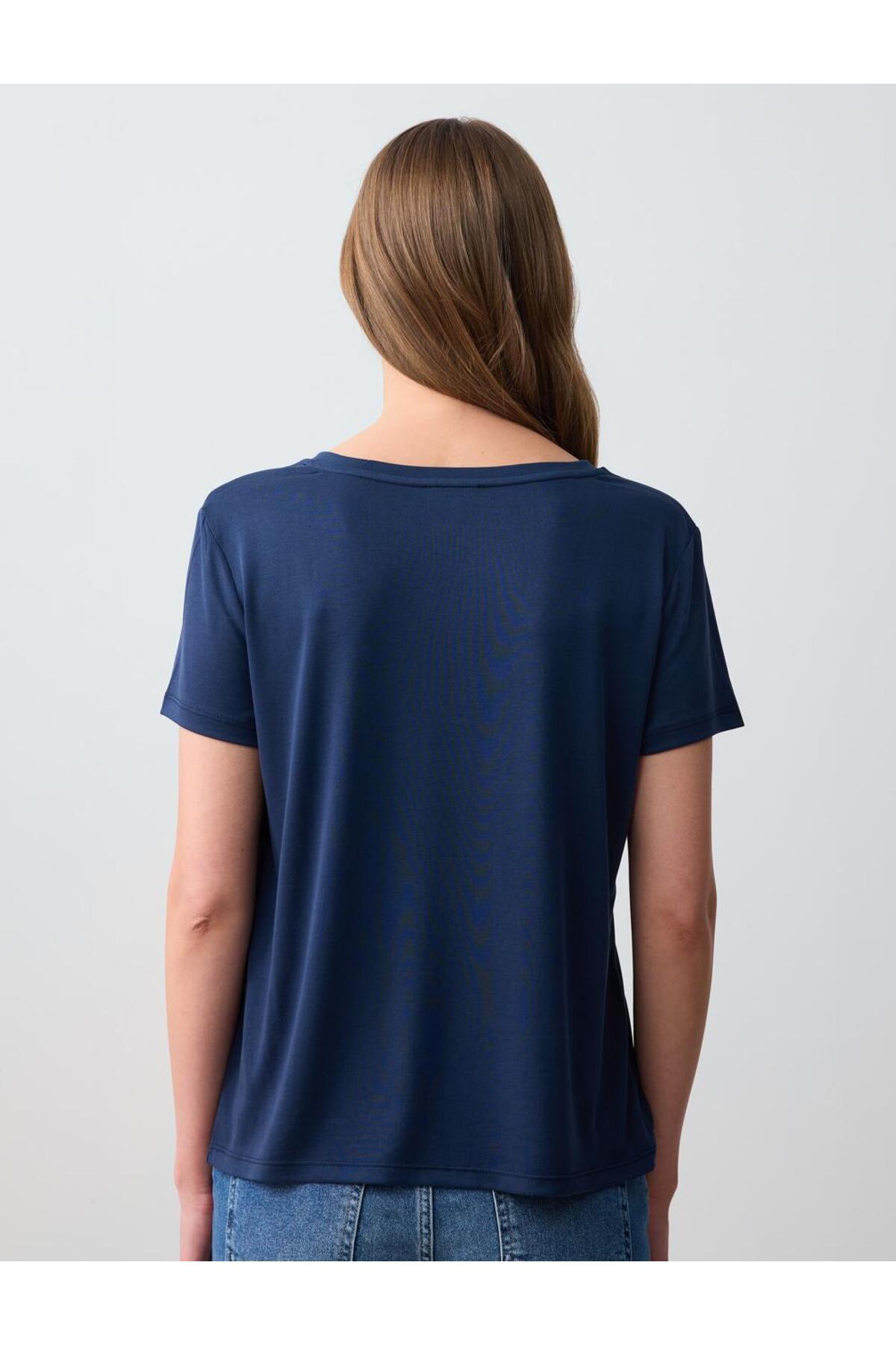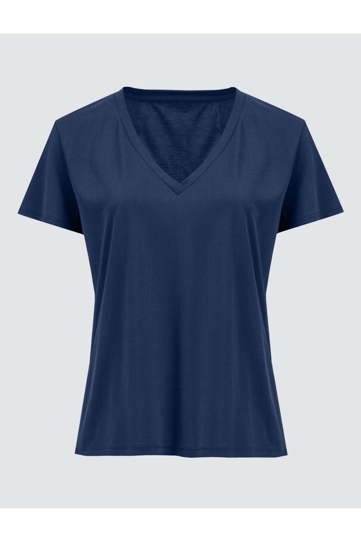 Lacivert V Yaka Kısa Kollu Örme Modal Tişört Lacivert V Yaka Kısa Kollu Örme Modal Tişört 5SW273871 2XL