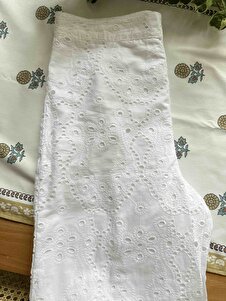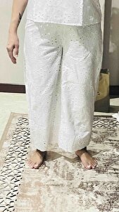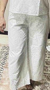 Beyaz %100 Pamuk Rahat Kesim Yüksek Bel Bol Paça Ajurlu Pantolon Beyaz %100 Pamuk Rahat Kesim Yüksek Bel Bol Paça Ajurlu Pantolon 5SW182915 XL