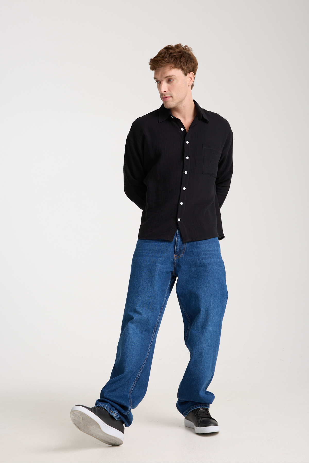 Erkek %100 Pamuk Keten Dokulu Müslin Kumaş Cepli Uzun Kollu Oversize Gömlek Erkek %100 Pamuk Keten Dokulu Müslin Kumaş Cepli Uzun Kollu Oversize Gömlek KETENCEPLİGMLK XL