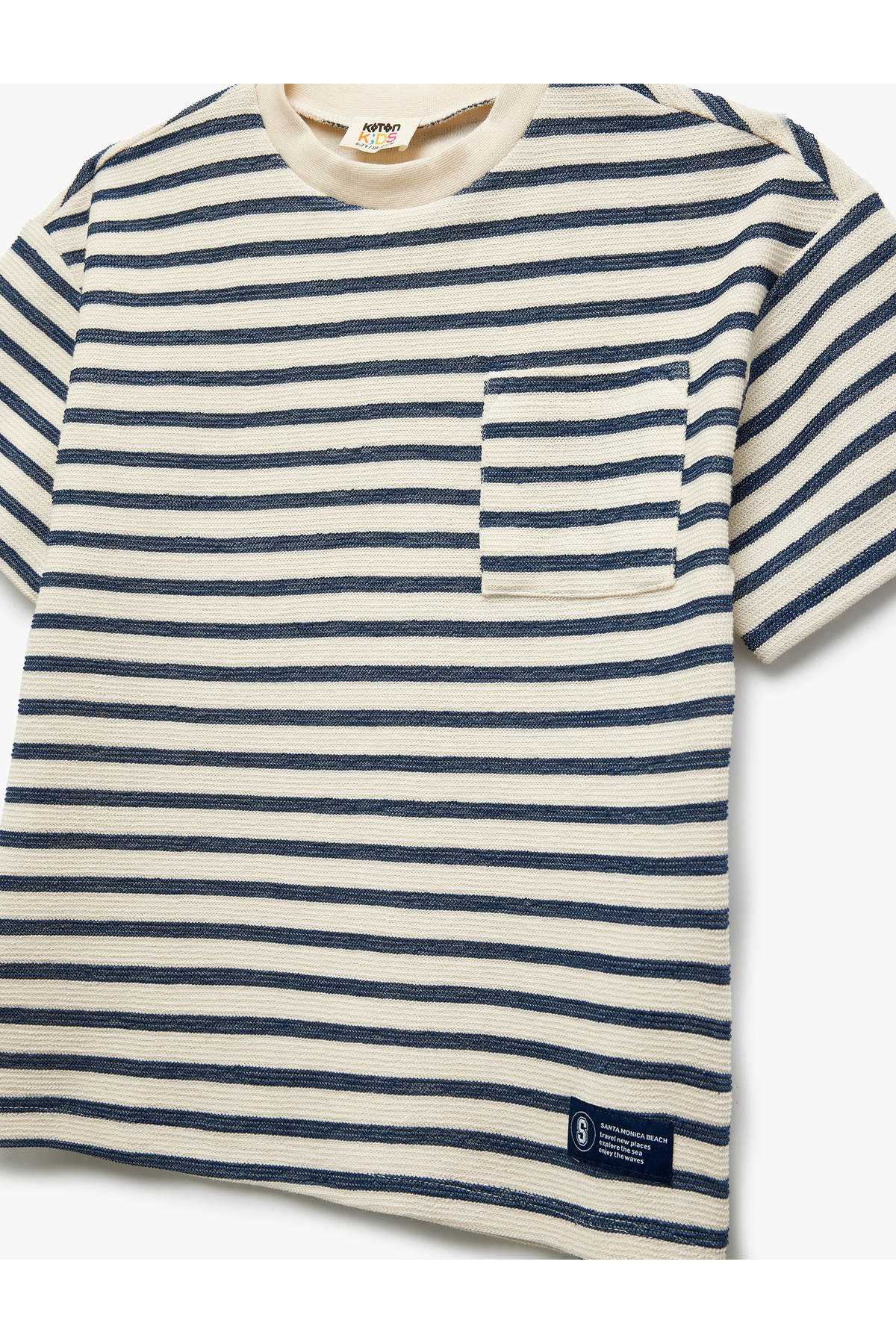 Kısa Kollu Bisiklet Yaka Pamuklu Oversize Çizgili Tişört Kısa Kollu Bisiklet Yaka Pamuklu Oversize Çizgili Tişört 5SKB10035TK Tek Ebat