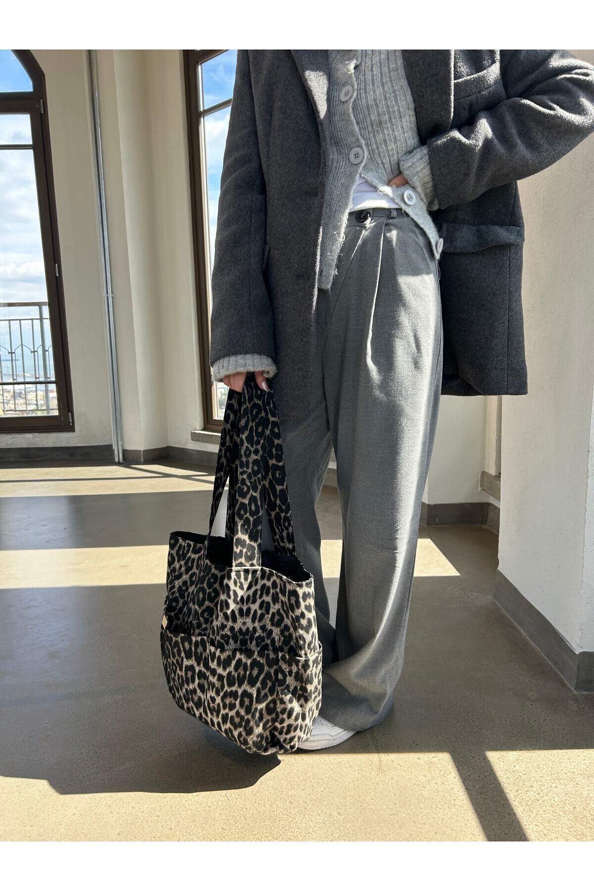 Leopar Desenli Geniş Hacimli Çok Cepli Tote Bag Leopar Desenli Geniş Hacimli Çok Cepli Tote Bag leopartotebag تک سایز