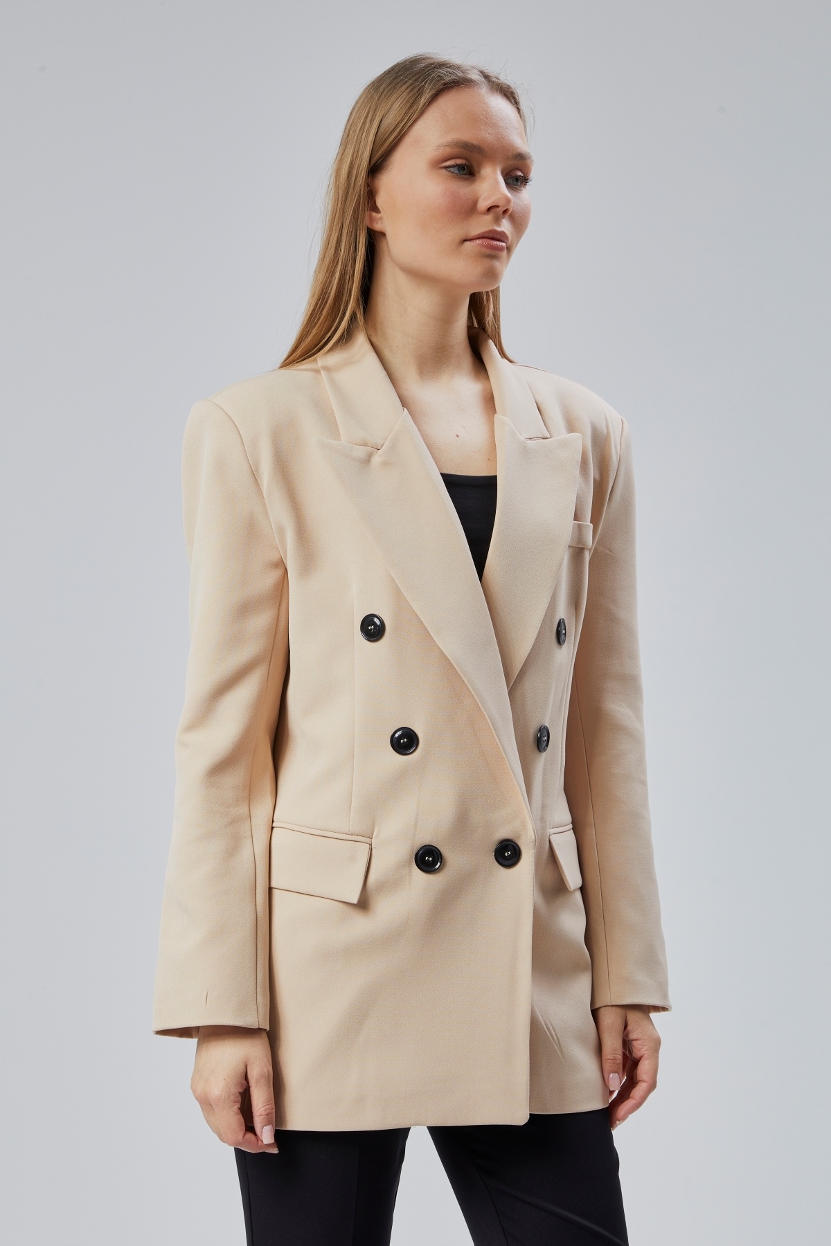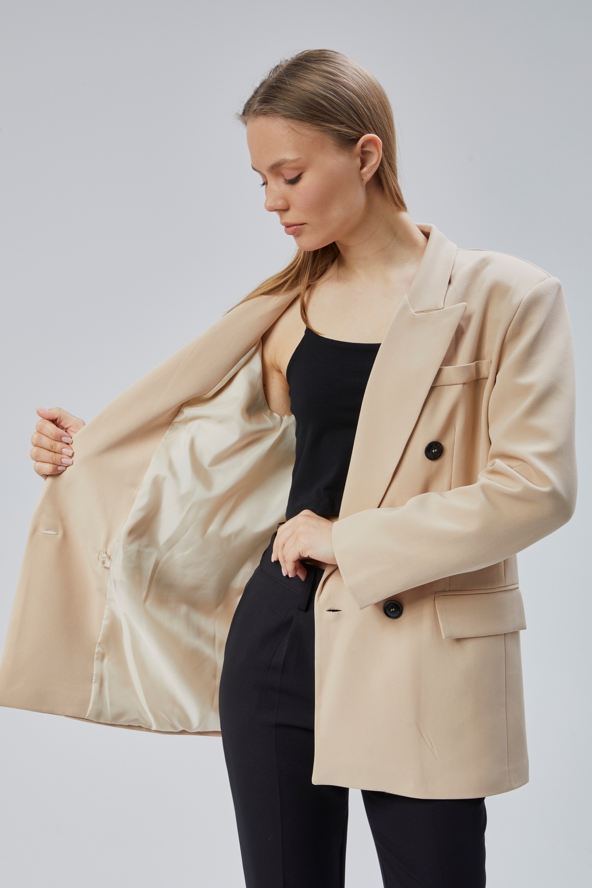 Bej Oversize Kruvaze Yaka Astarlı Blazer Ceket Bej Oversize Kruvaze Yaka Astarlı Blazer Ceket 46118 XL