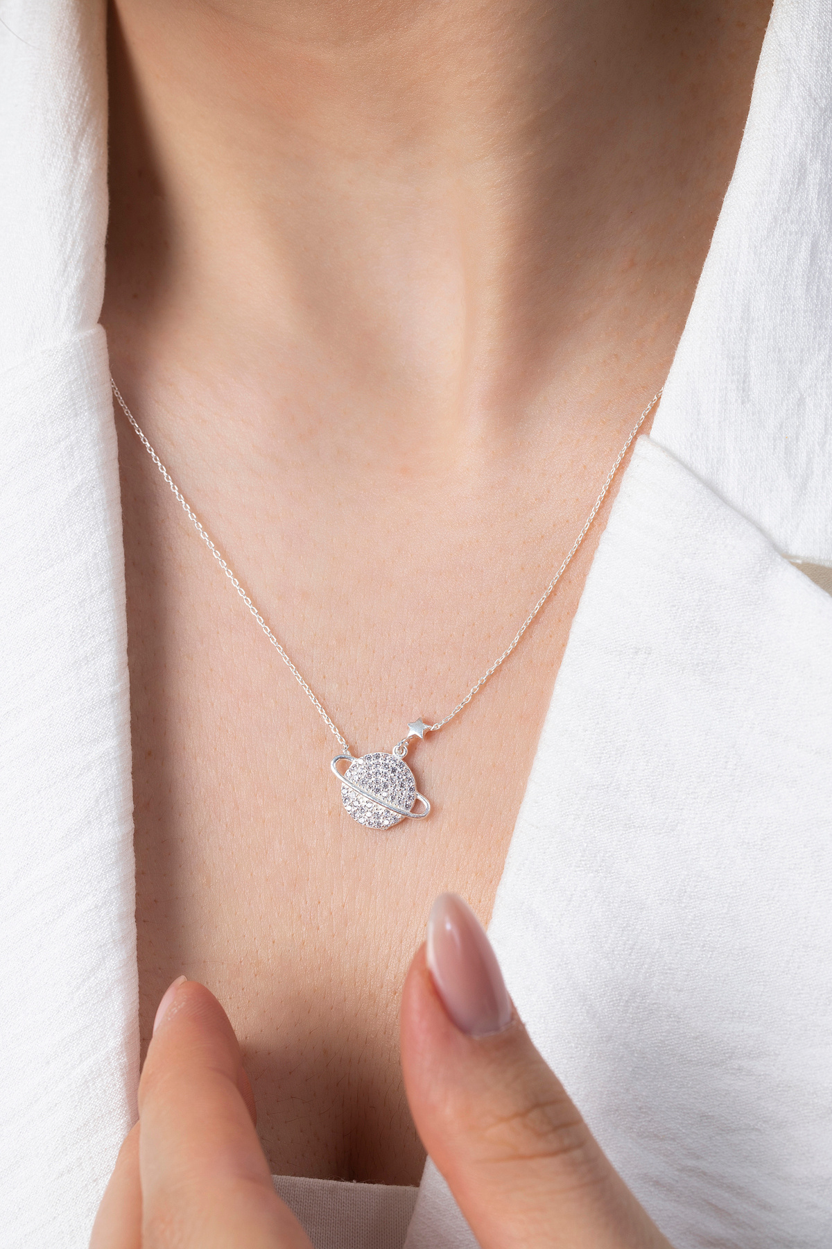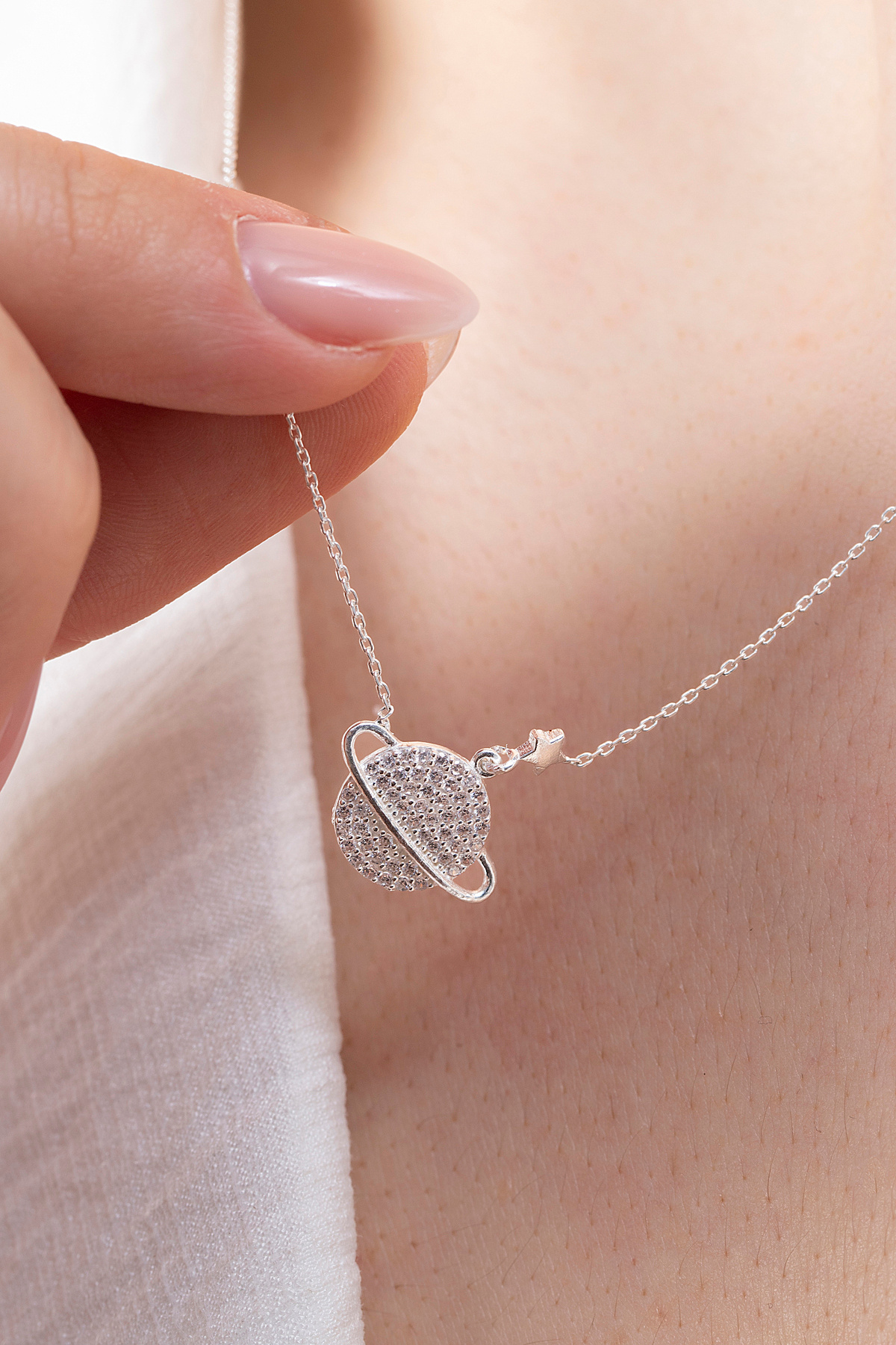925 Ayar Gümüş Kolye - Işıklı Kutuda Gezegen Kolye - Satürn Kolye - 925 Ayar Zarif Gümüş Kolye 925 Ayar Gümüş Kolye - Işıklı Kutuda Gezegen Kolye - Satürn Kolye - 925 Ayar Zarif Gümüş Kolye ELKSLVR7678-Siyahkutu تک سایز