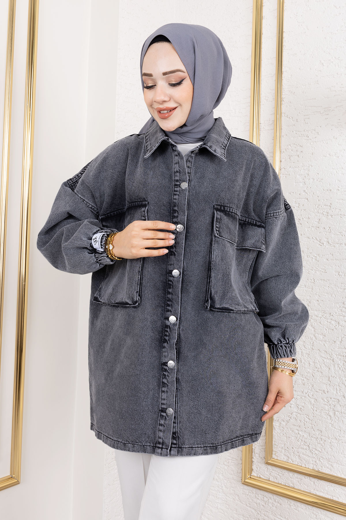 Körüklü Cepli Oversize Kot Ceket TSD250103 Antrasit Körüklü Cepli Oversize Kot Ceket TSD250103 Antrasit 48