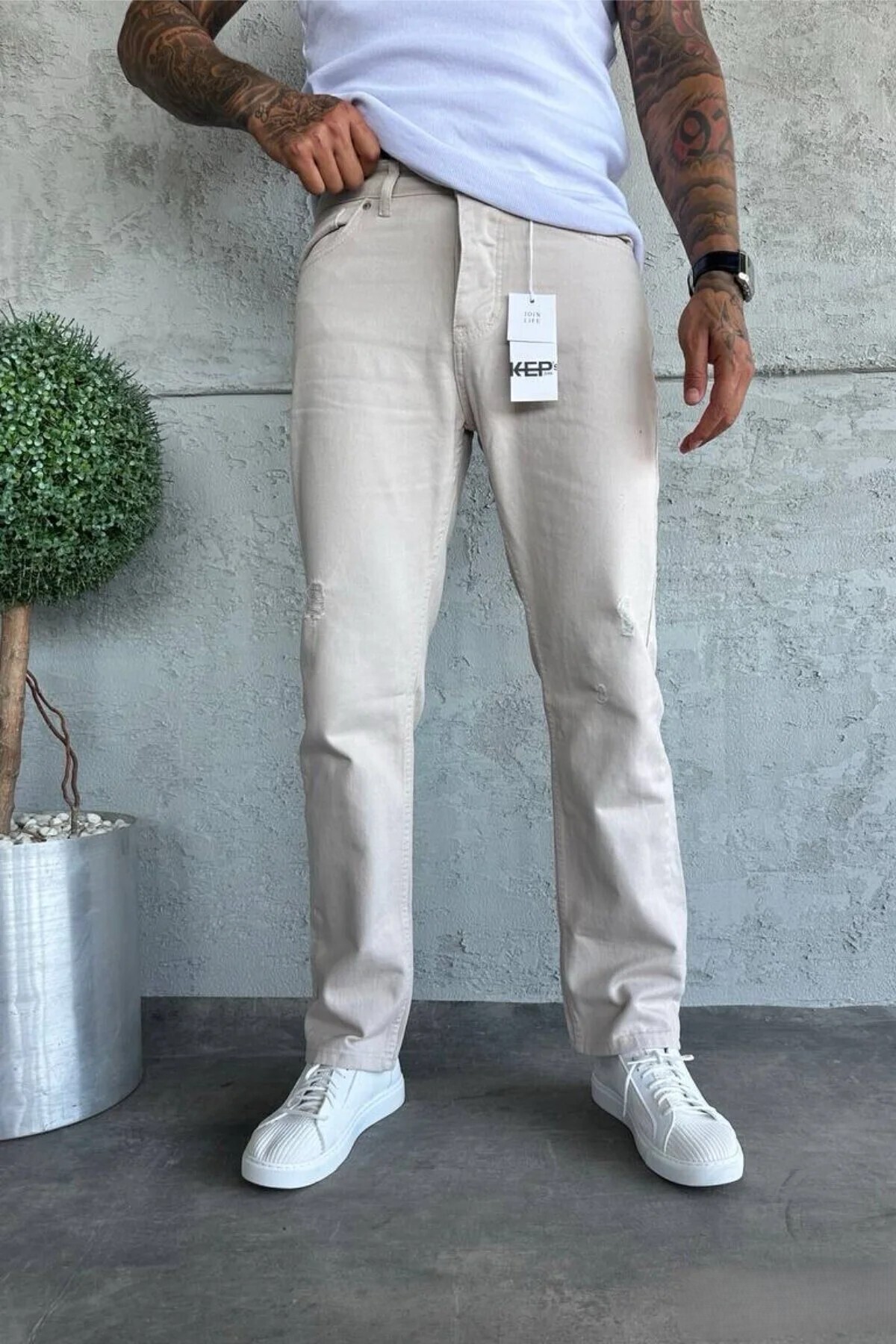 Erkek Boyfriend Kalıp Denim Kumaş Bej Jean Kot Pantolon Mz0444 Erkek Boyfriend Kalıp Denim Kumaş Bej Jean Kot Pantolon Mz0444 36
