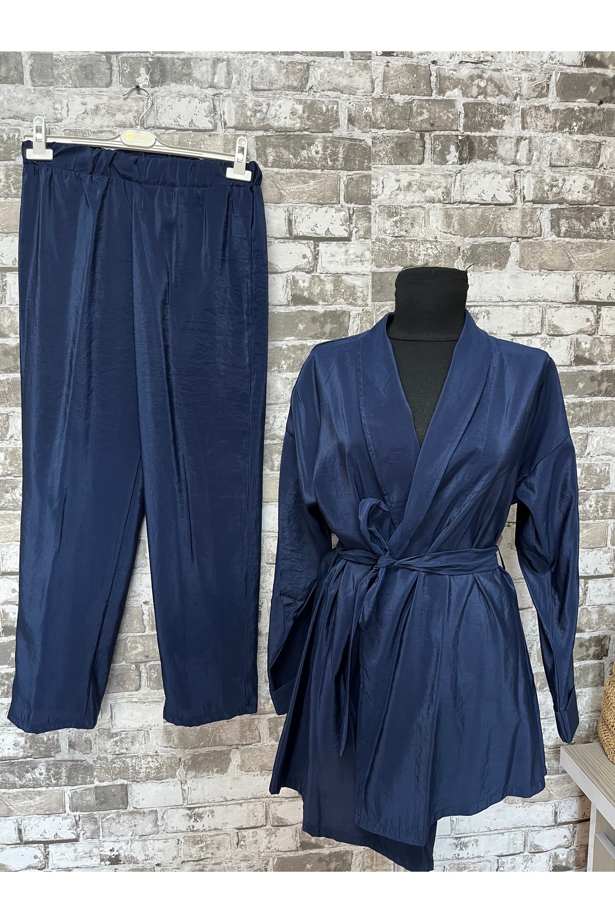 Kadın Bel Bağcıklı Kimono Takım Kadın Bel Bağcıklı Kimono Takım MDTRN32514 2XL