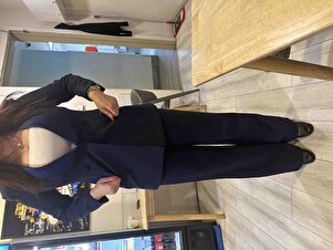 Kadin Saten Yaka Çift Düğmeli Blazer Ceket Pantalon Takım Elbise Kadin Saten Yaka Çift Düğmeli Blazer Ceket Pantalon Takım Elbise STNTK3 42