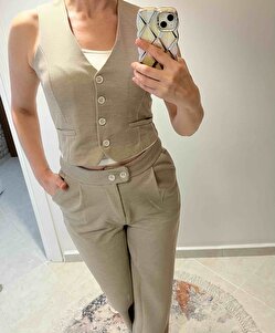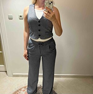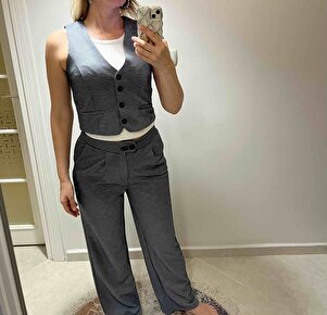 Kadın Lacivert Düğmeli Yelek ve Palazzo Pantolon Takım - 2515 Kadın Lacivert Düğmeli Yelek ve Palazzo Pantolon Takım - 2515 AMD2025A000015 XL