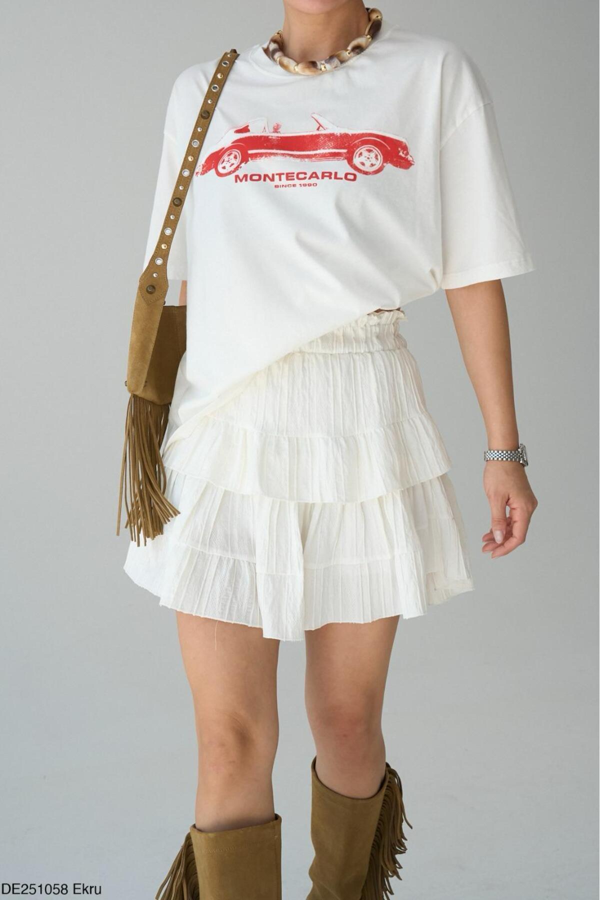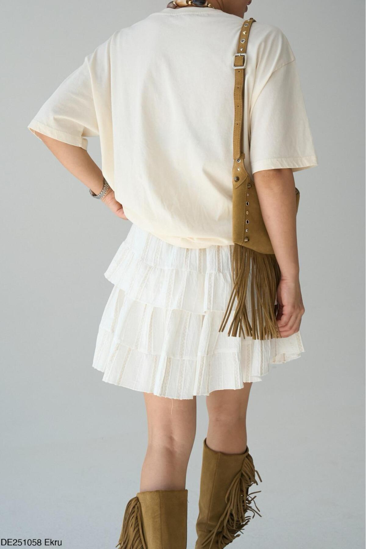 Kadın Ekru Beli Lastikli Nakış Detaylı Astarlı Mini Etek Kadın Ekru Beli Lastikli Nakış Detaylı Astarlı Mini Etek DE251058 L
