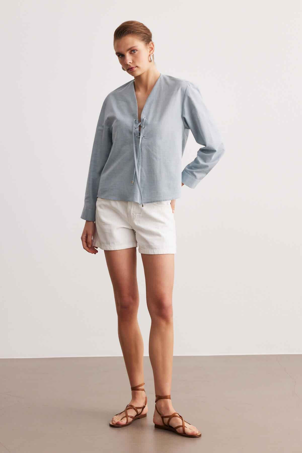 Mavi Pamuklu V Yaka Bluz Mavi Pamuklu V Yaka Bluz SPN25-385 50