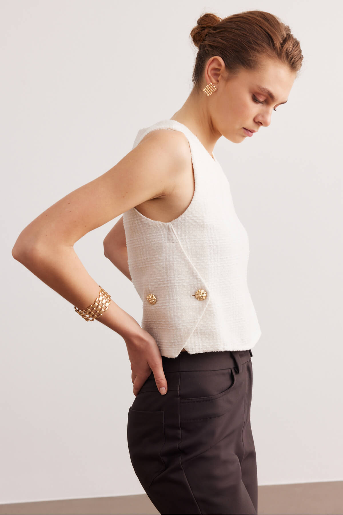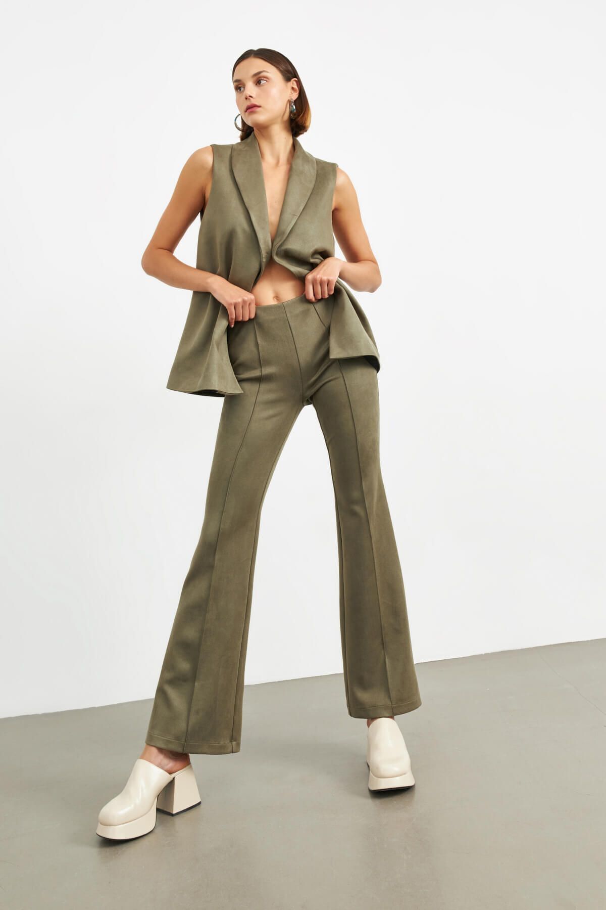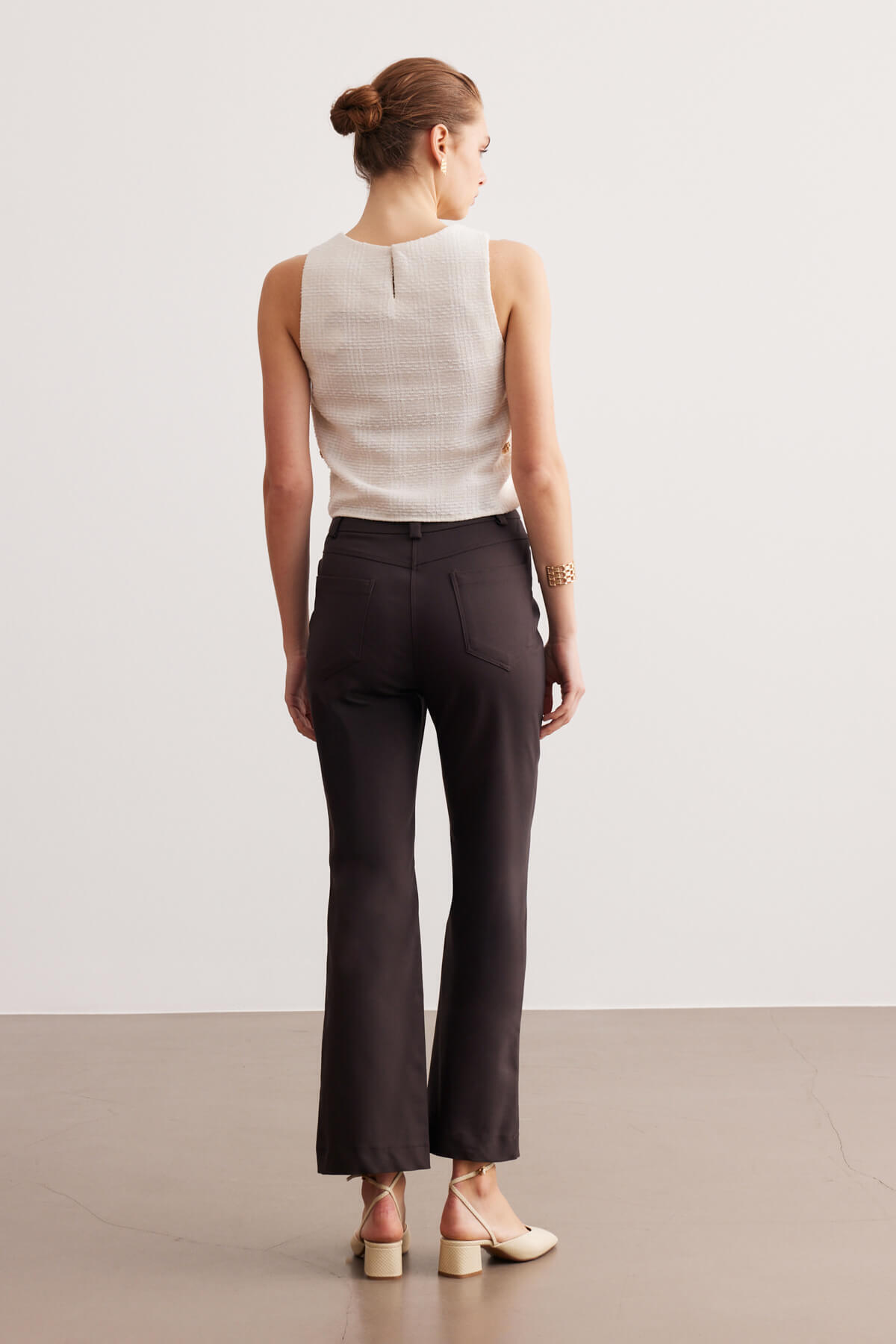 Kahverengi Yüksek Bel Boru Paça Pantolon Kahverengi Yüksek Bel Boru Paça Pantolon SPN25-413 44