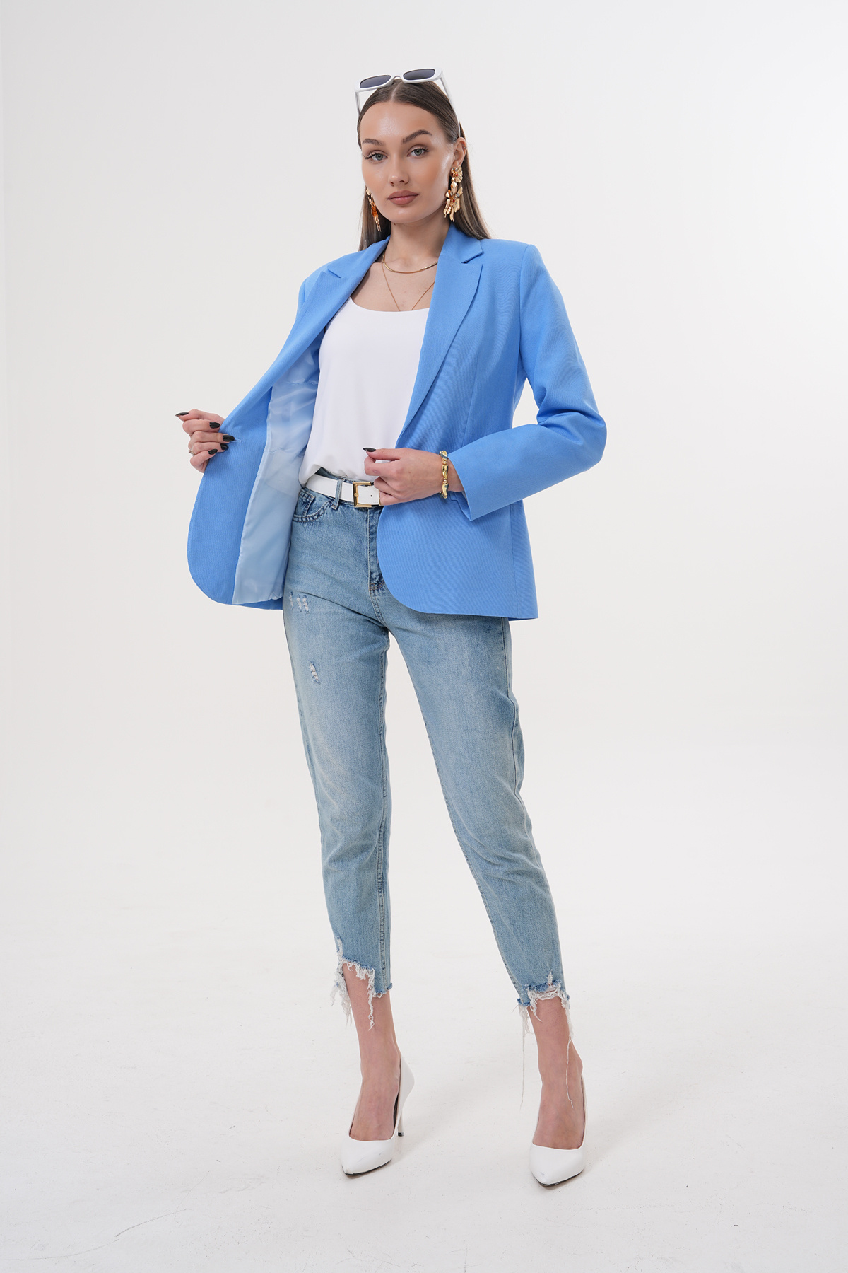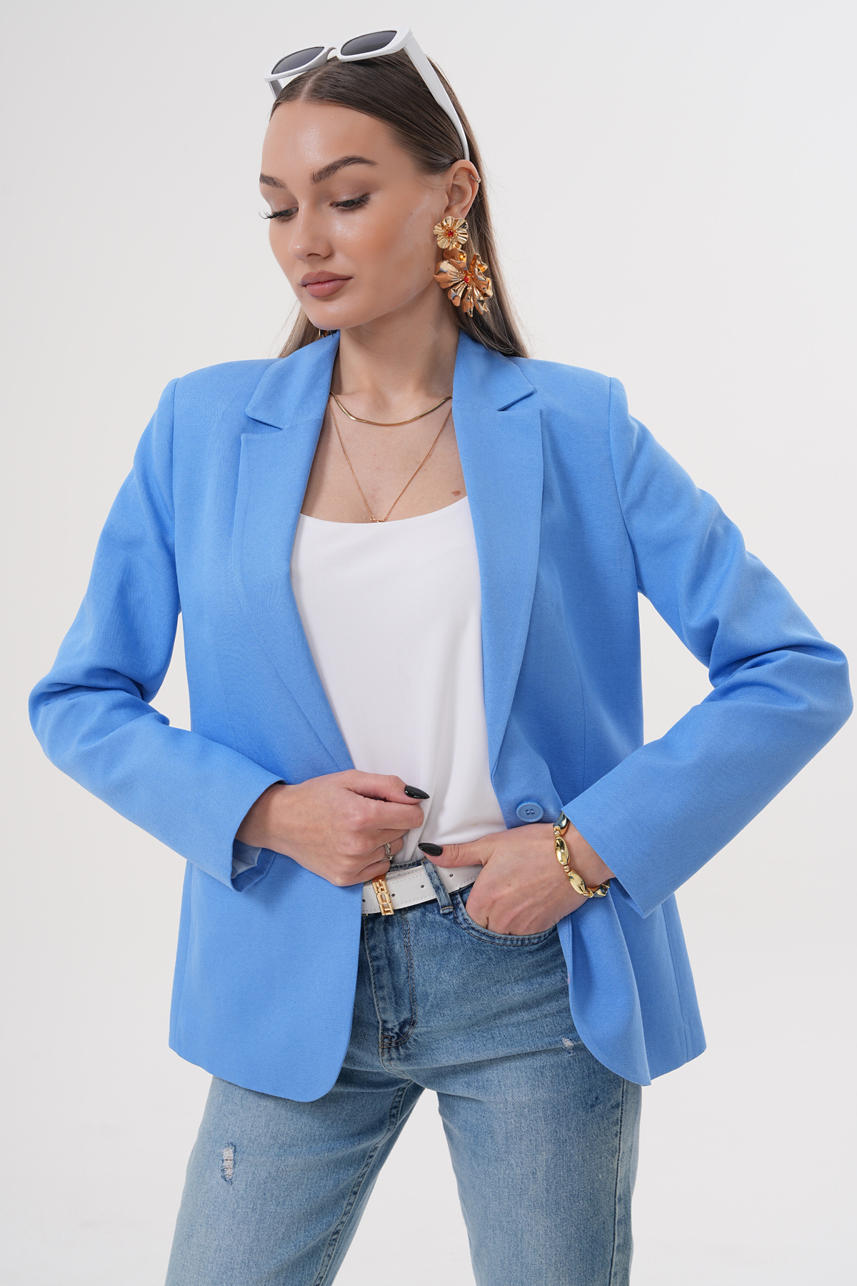 KADIN KETEN KARIŞIM MAVİ BLAZER CEKET KADIN KETEN KARIŞIM MAVİ BLAZER CEKET NSC10005 42