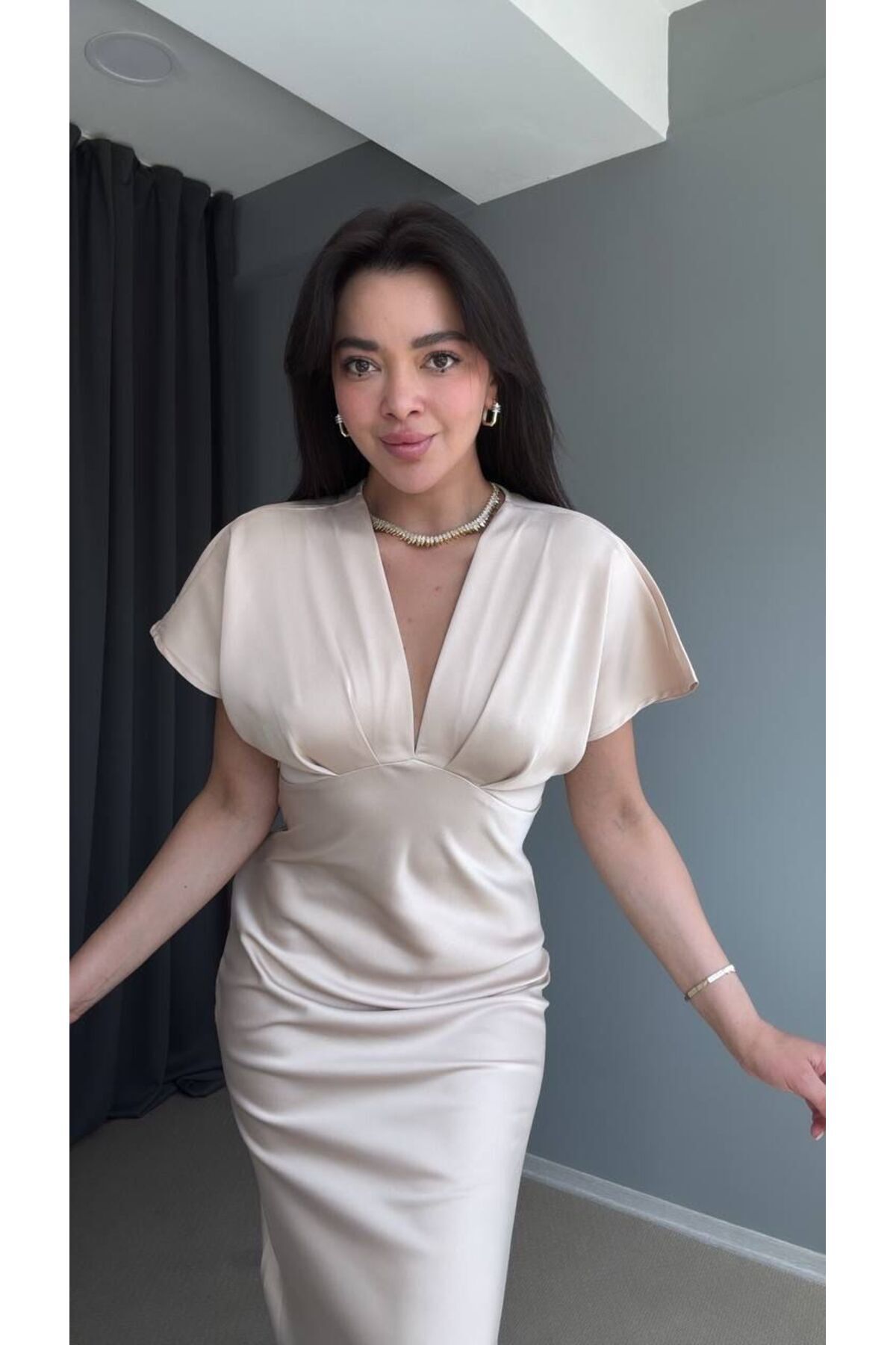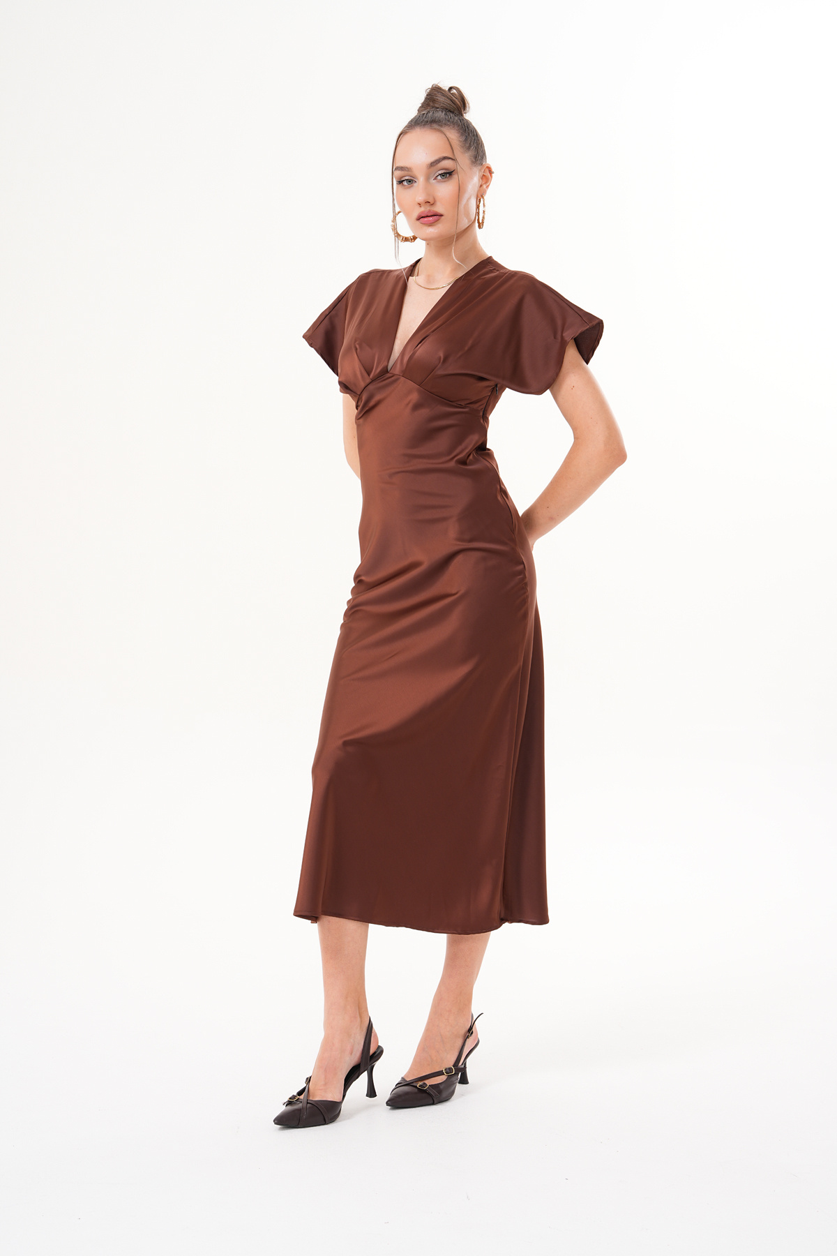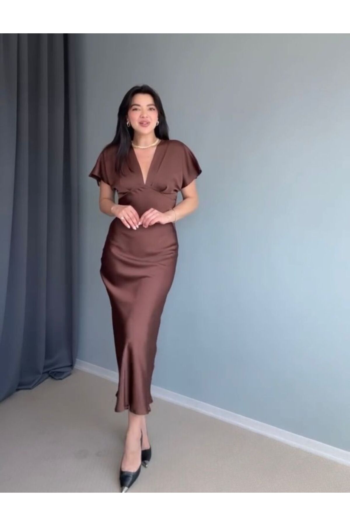 Tasarım Midi Boy İpek Saten Elbise Tasarım Midi Boy İpek Saten Elbise 11944837-87522144 L