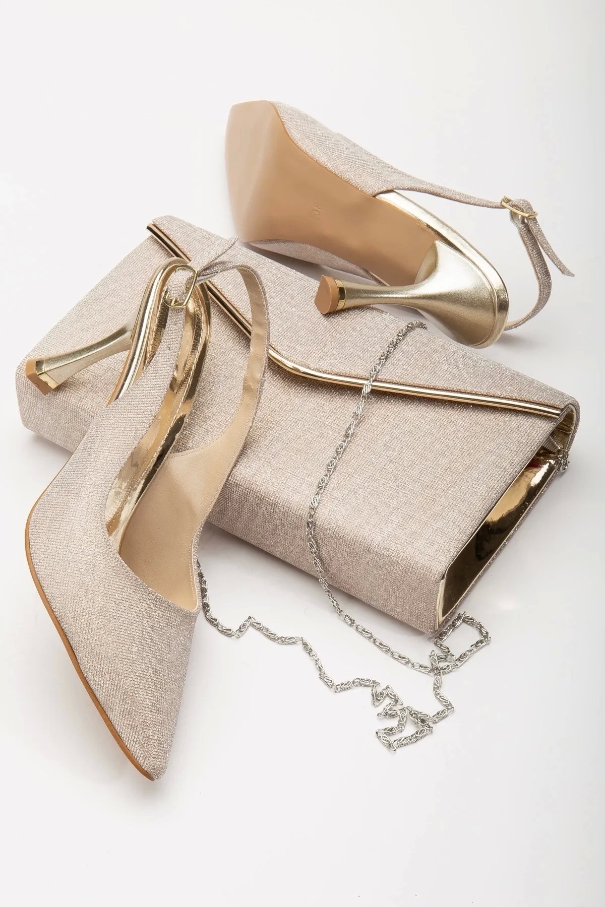 Kadın Taş Işlemeli Abiye Ayakkabı Ve Çanta Takımı Altın Saten Kadın Taş Işlemeli Abiye Ayakkabı Ve Çanta Takımı Altın Saten nihatsur 40