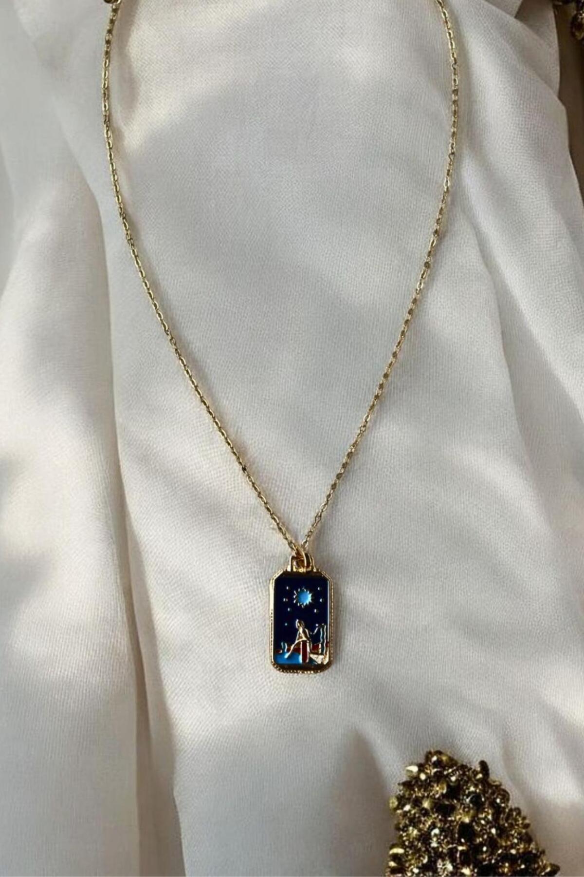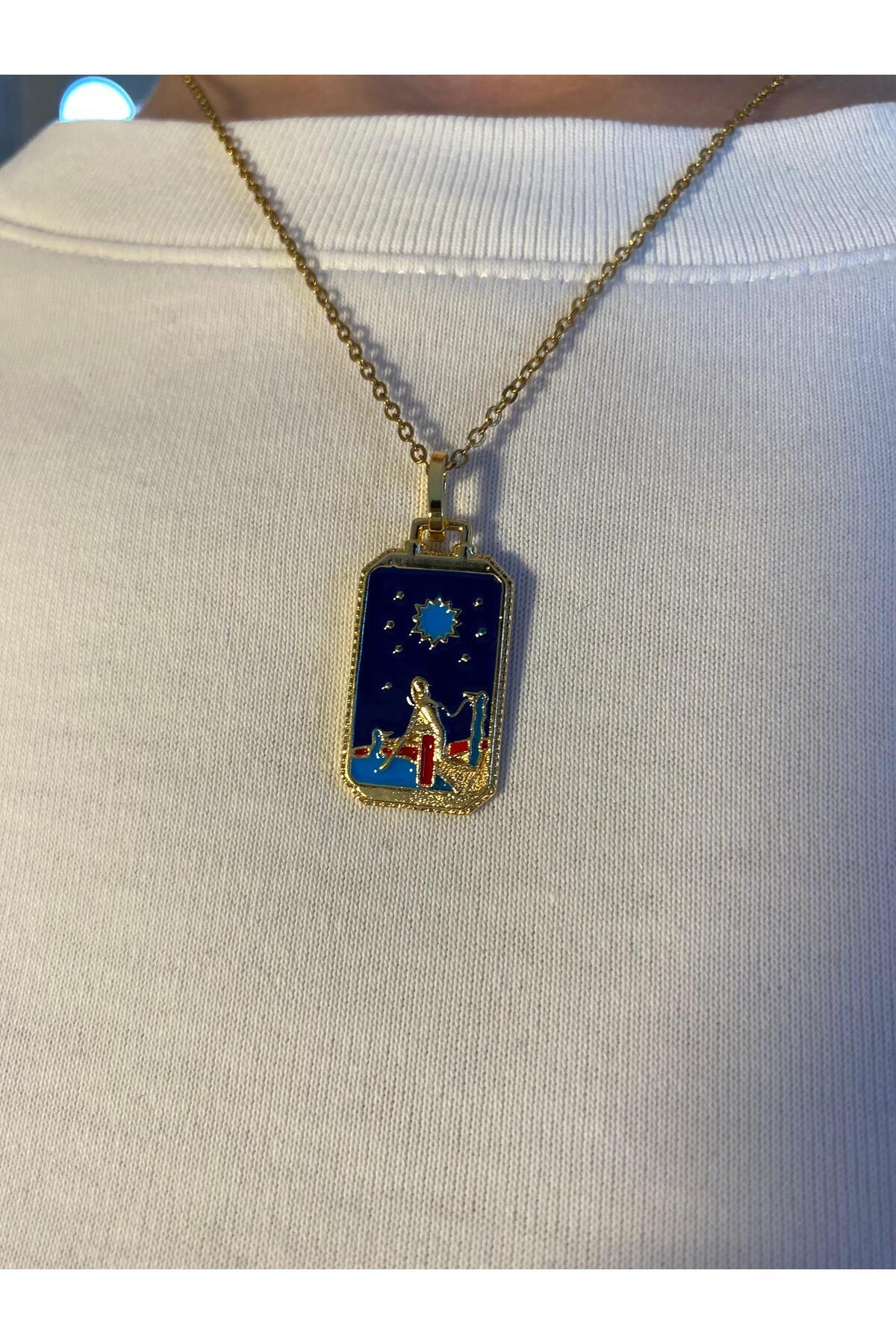 Güneş ve Yıldız Motifli Kadın Figürlü Mavi Çelik Kolye Güneş ve Yıldız Motifli Kadın Figürlü Mavi Çelik Kolye MRD00583 تک سایز
