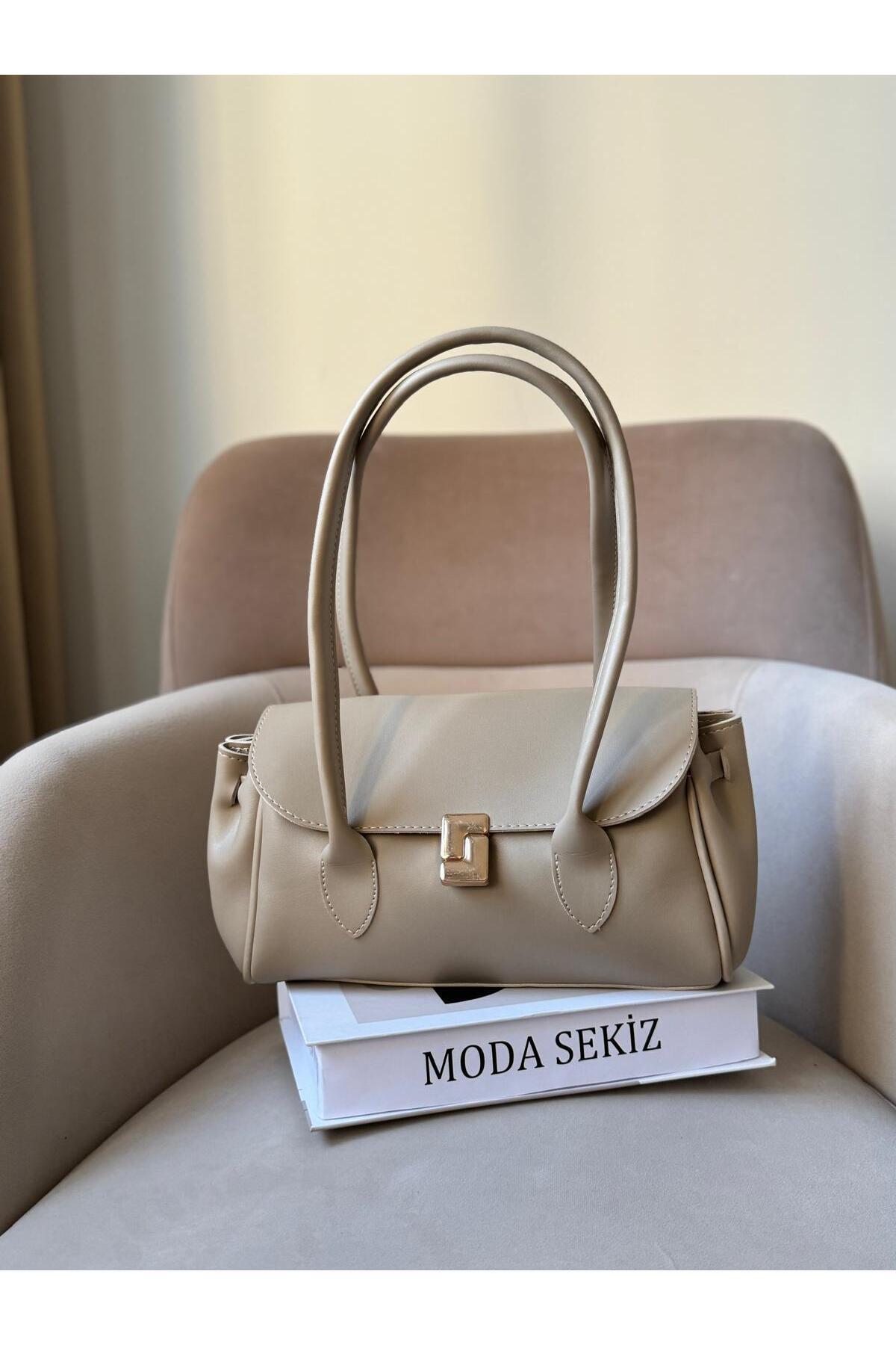 Kadın Büzgülü Gold Aksesuarlı Omuz Çanta Kadın Büzgülü Gold Aksesuarlı Omuz Çanta MODASKZYN تک سایز