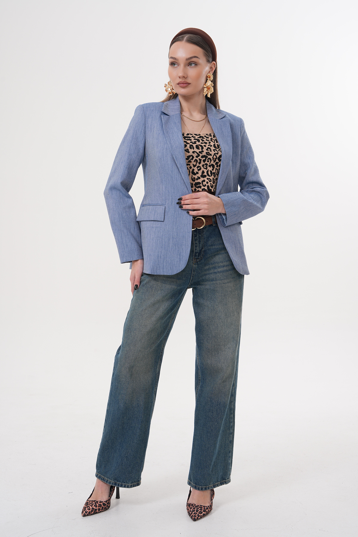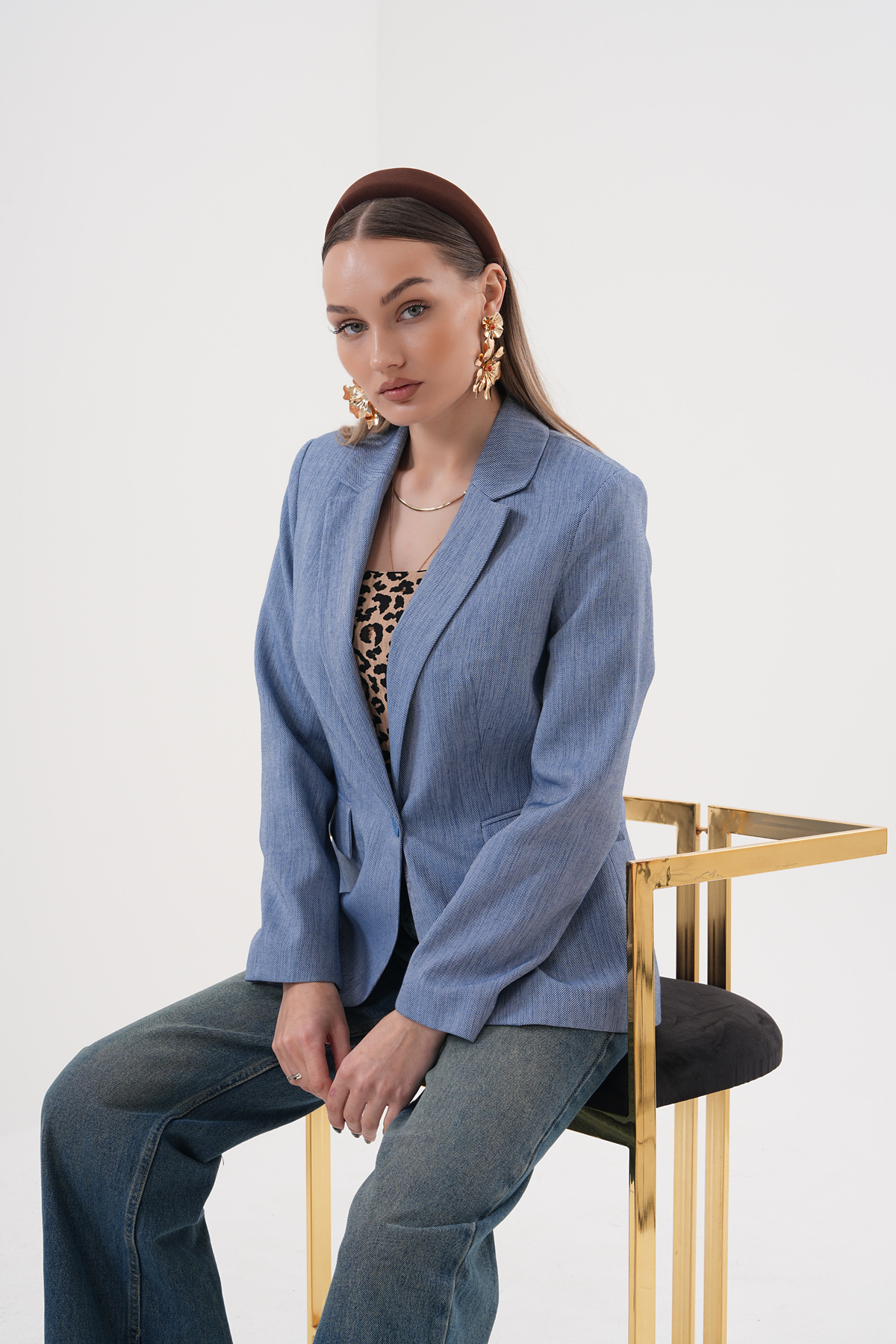 KADIN ÇİZGİLİ CEP DETAYLI MAVİ CEKET KADIN ÇİZGİLİ CEP DETAYLI MAVİ CEKET NSC10005 42