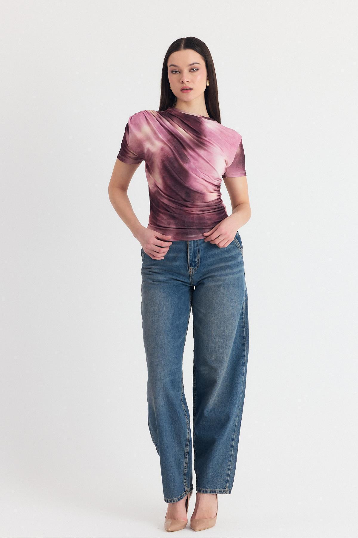 Pembe Desenli Büzgülü Sandy Bluz 12303 Pembe Desenli Büzgülü Sandy Bluz 12303 25Y1123UST122 L