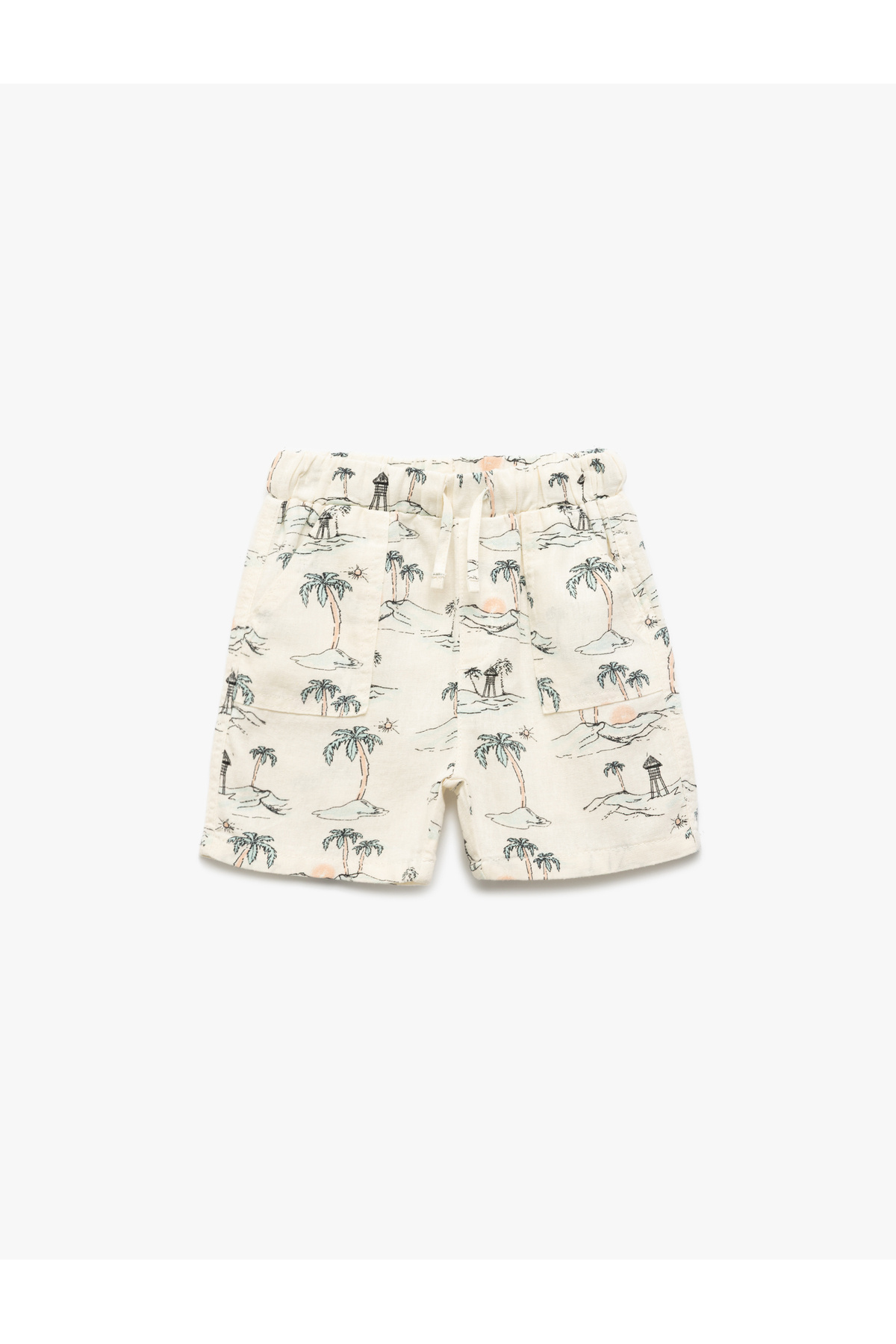 Keten Karışımlı Beli Bağcıklı Cepli Pamuklu Basic Şort Keten Karışımlı Beli Bağcıklı Cepli Pamuklu Basic Şort 5SMB40003TW 3-4 Yaş