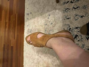Kadın Taba Bilekten Tokalı Dolgu Topuklu Ayakkabı Süet Hakiki Deri Sandalet 25SFD153210 Kadın Taba Bilekten Tokalı Dolgu Topuklu Ayakkabı Süet Hakiki Deri Sandalet 25SFD153210 40