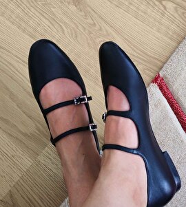 Kadın Siyah Çift Tokalı Hakiki Deri Ayakkabı,Yazlık Ayakkabı 25SFD230418 Kadın Siyah Çift Tokalı Hakiki Deri Ayakkabı,Yazlık Ayakkabı 25SFD230418 41
