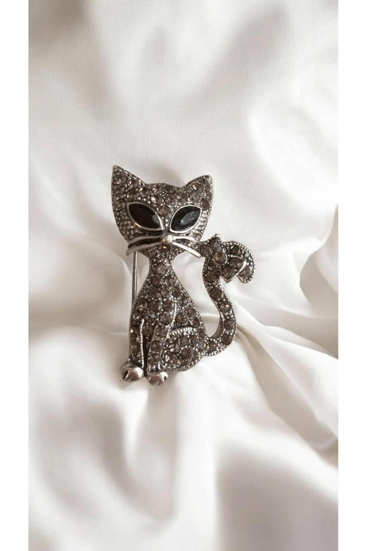Gümüş Parıltı - Kedi Broş Gümüş Parıltı - Kedi Broş CAT199 تک سایز