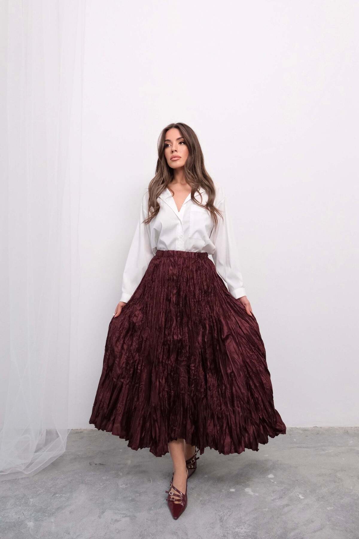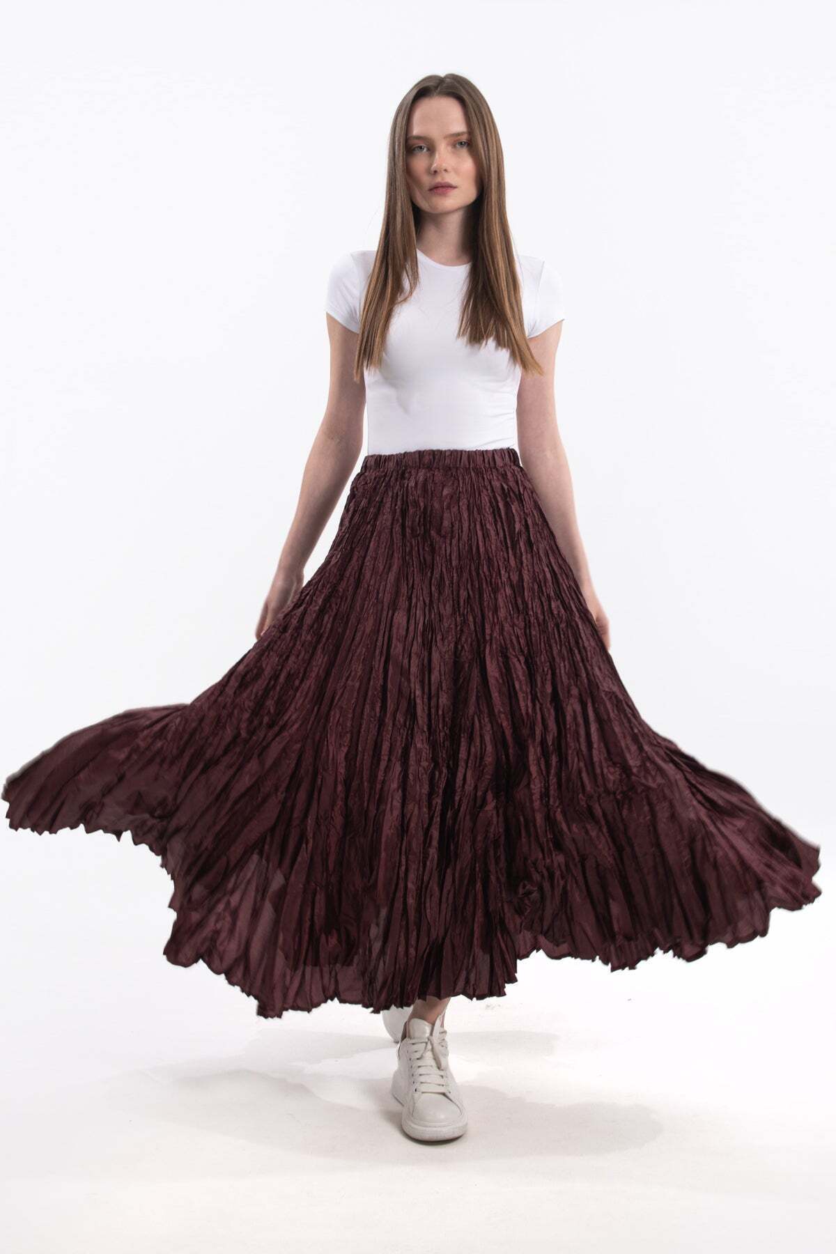 Kadın Vişne Rengi Ithal Pileli Parlak Saten Kraşlı Bohem Maxi Etek Yüksek Bel Şık Ve Rahat Tasarım Kadın Vişne Rengi Ithal Pileli Parlak Saten Kraşlı Bohem Maxi Etek Yüksek Bel Şık Ve Rahat Tasarım 5186 Standart