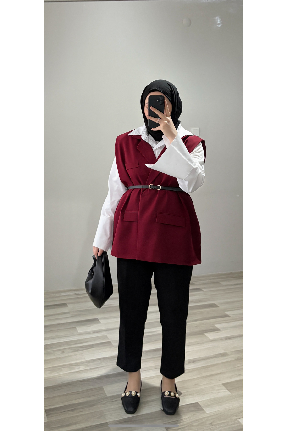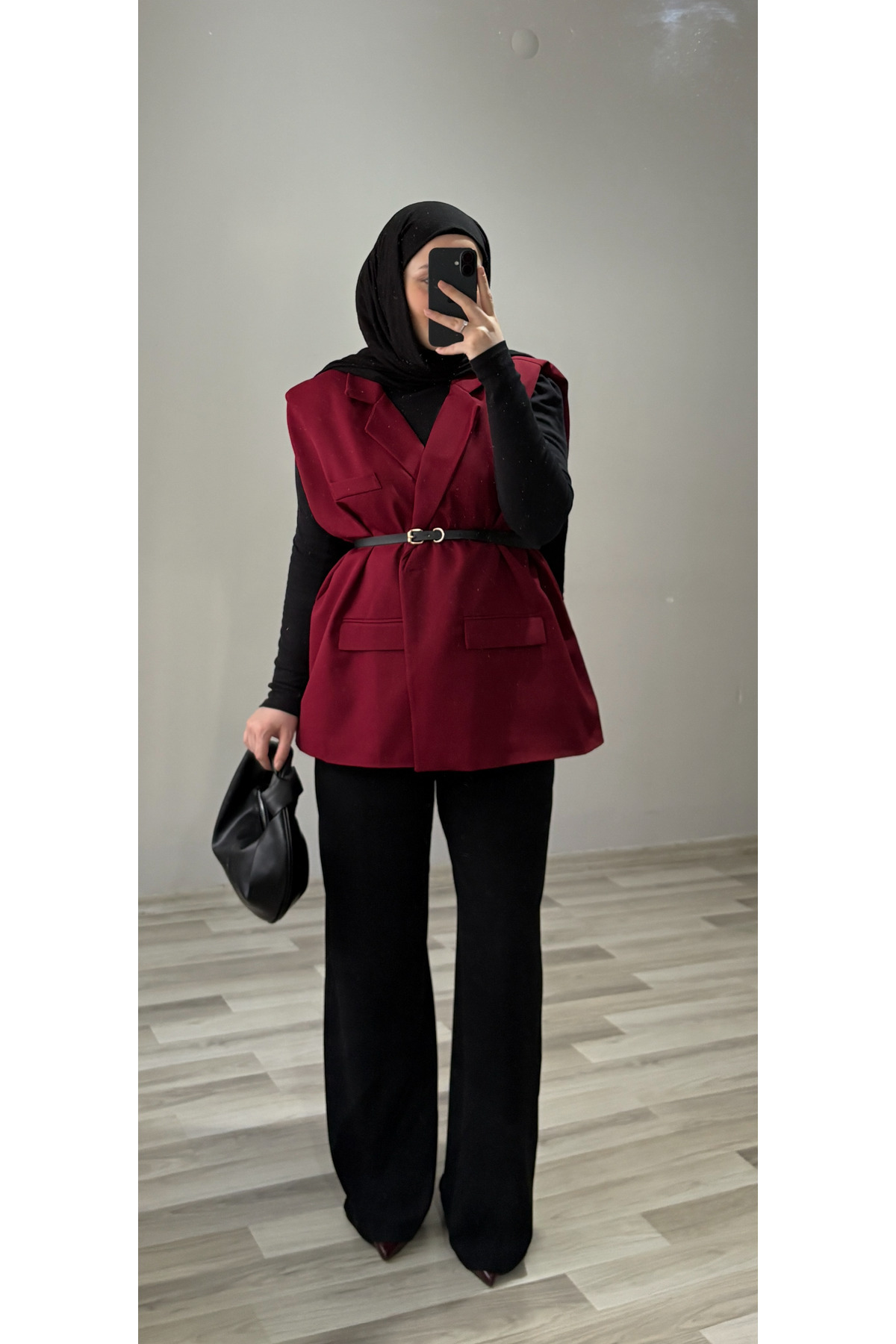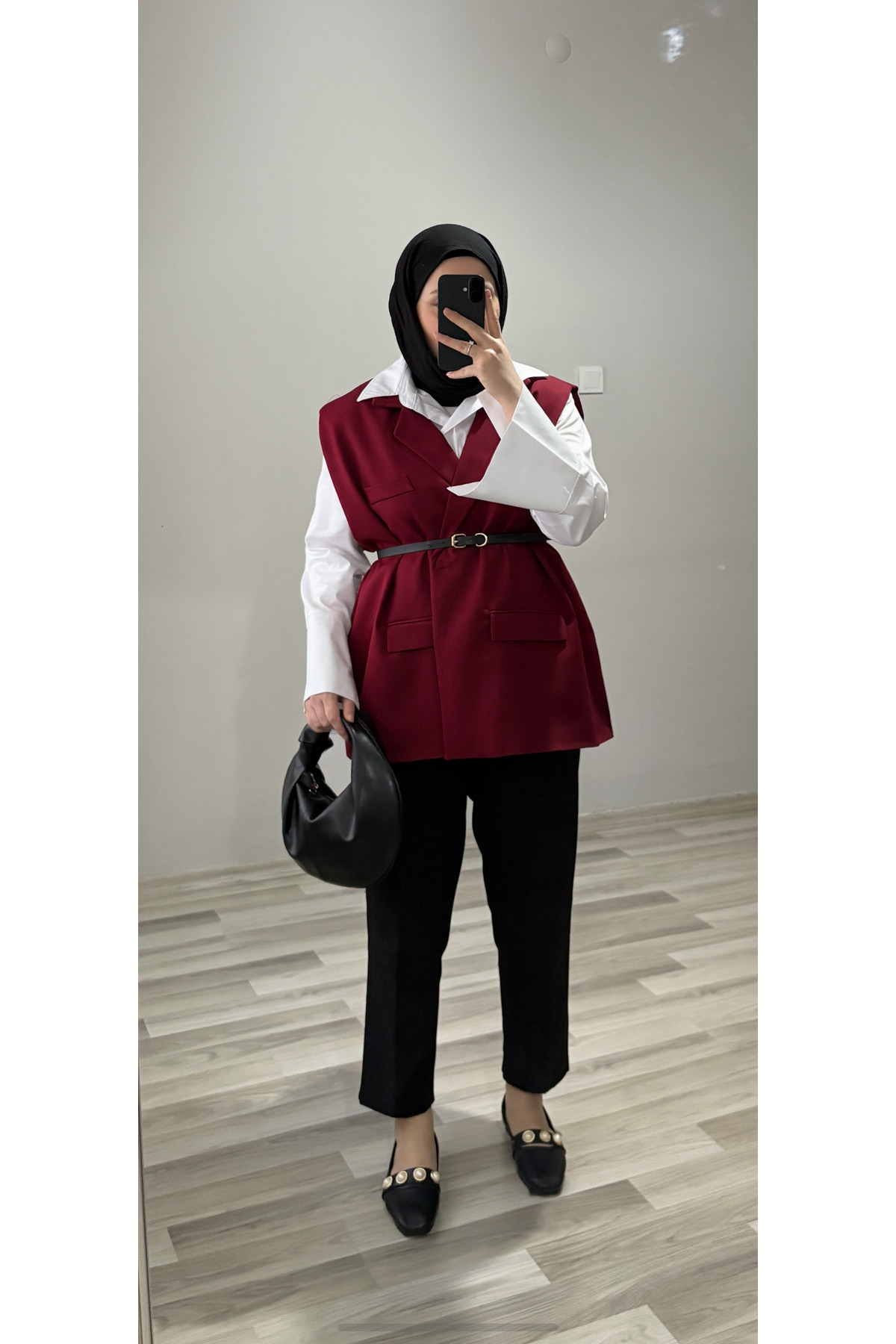 VATKALI KEMERLİ OVERSİZE YELEK VATKALI KEMERLİ OVERSİZE YELEK Yelek ceket Standart