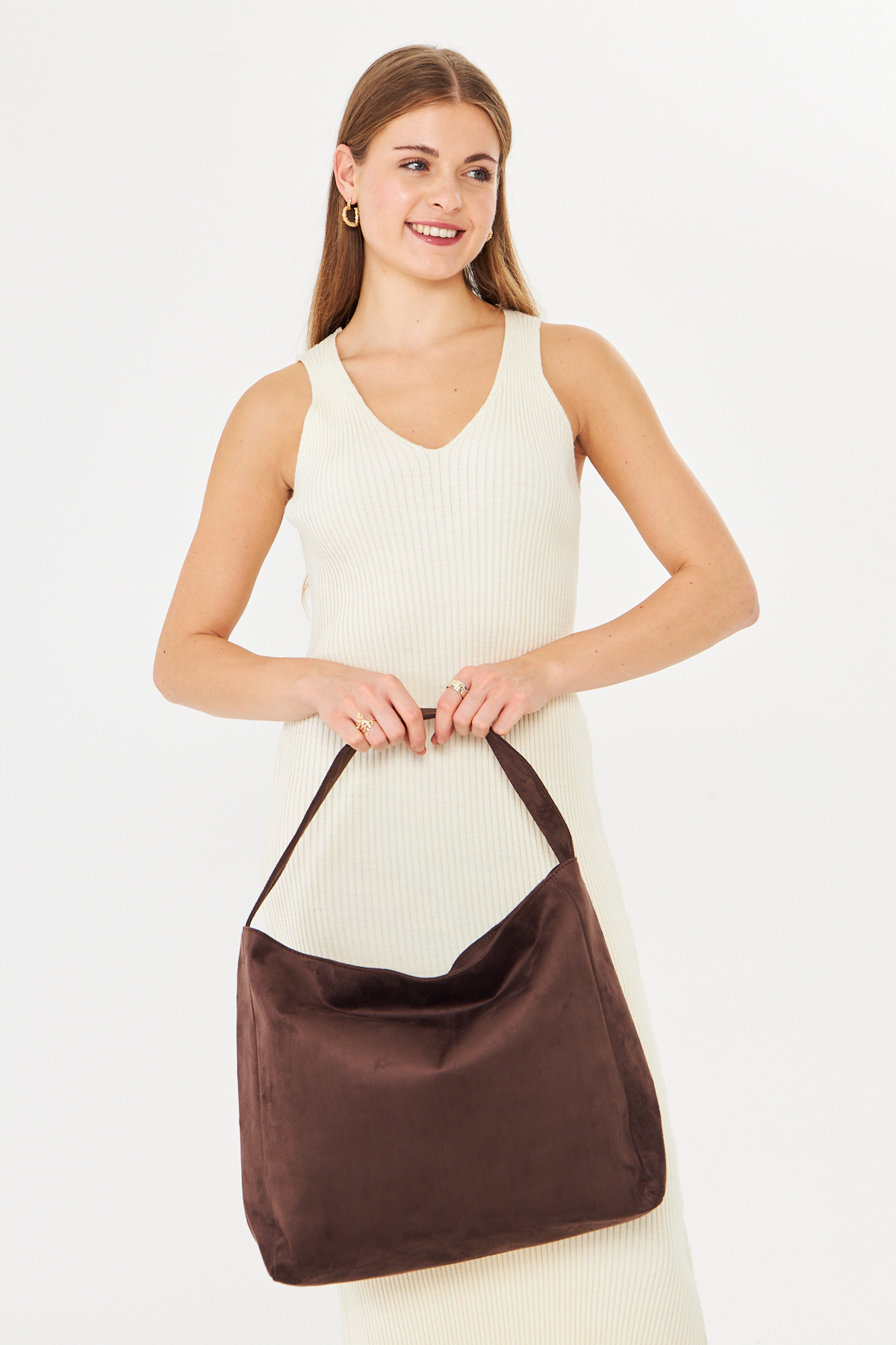 Lola Süet Kahverengi Salaş Omuz Çantası Lola Süet Kahverengi Salaş Omuz Çantası LL01 تک سایز