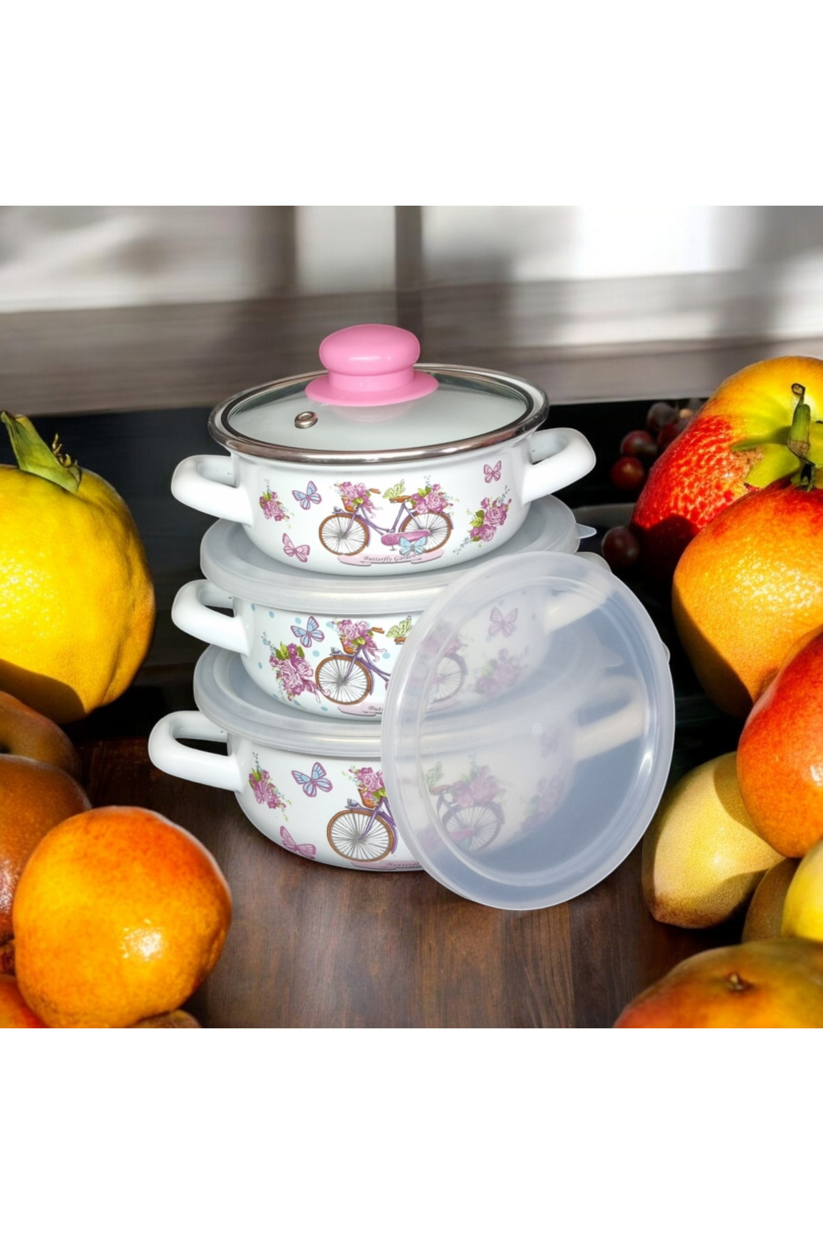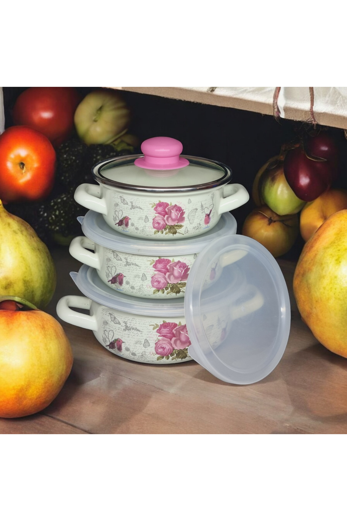 Emaye 3 lü Pişir Sakla Tencere Ve Saklama Kabı Seti 9 Parça Emaye 3 lü Pişir Sakla Tencere Ve Saklama Kabı Seti 9 Parça pişirsakla تک سایز